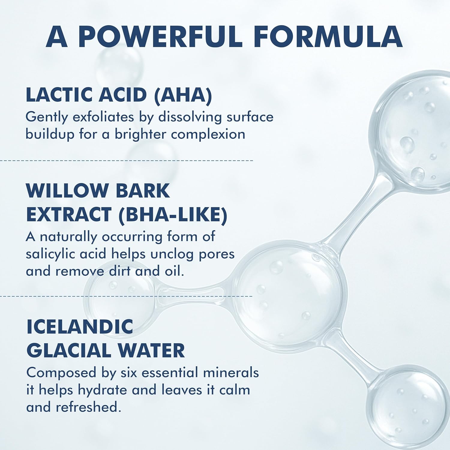 - Natural AHA and BHA blend: Lactic acid and white willow bark work together to promote cell turnover and improve visible skin texture while addressing clogged pores and uneven skin tone