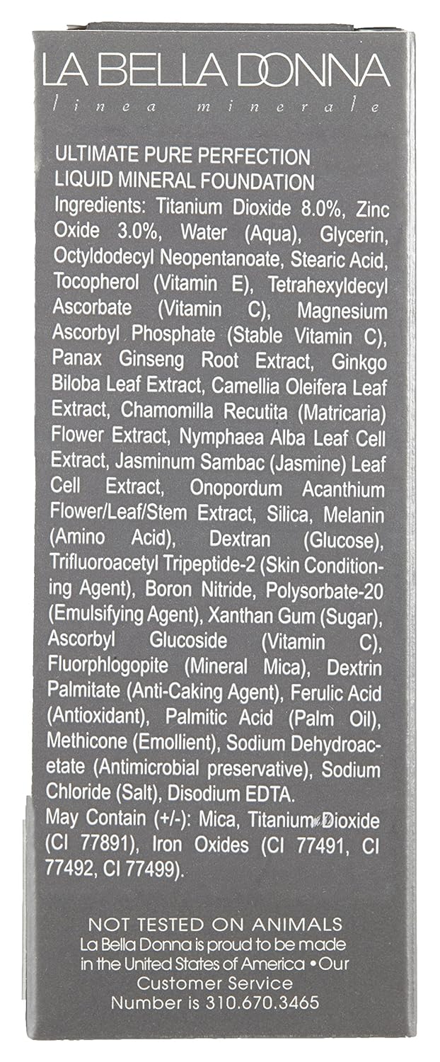 - ALL NATURAL: La Bella Donna Liquid Mineral Foundation is formulated with only the safest and most gentle pure natural ingredients, making it suitable for all skin types. It contains skin-soothing botanicals, minerals, and more.