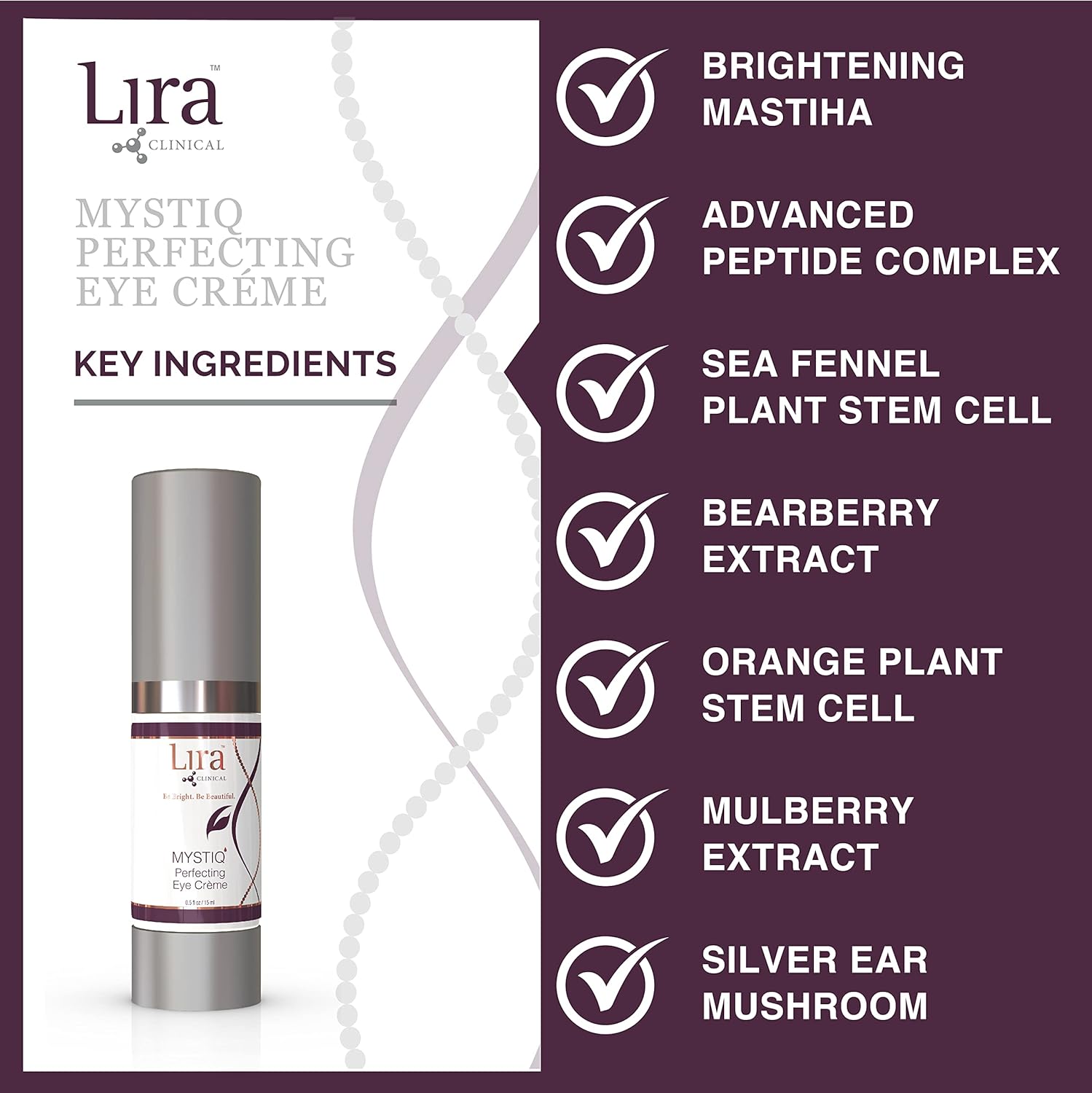 Lira Clinical MYSTIQ Perfecting Eye Cream - Lifting Anti Aging Eye Cream with Collagen Peptides - 0.5 fl oz