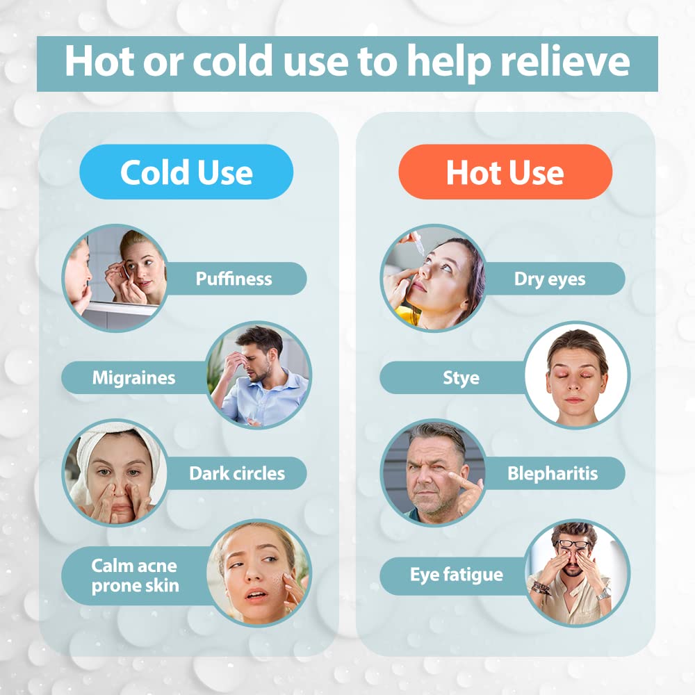 - Fast Relief for Eyes Discomfort - Whether you are looking to get relief from puffy eyes, post eye surgery, dry eyes, headaches, or just pamper yourselves and get relaxation, our gel eye mask is here to help! Use our gel eye mask to create a cold compress for relieving puffy eyes, dark circles, headaches, migraines, tired eyes, or as a hot eye mask to reduce swelling, dry eyes.
