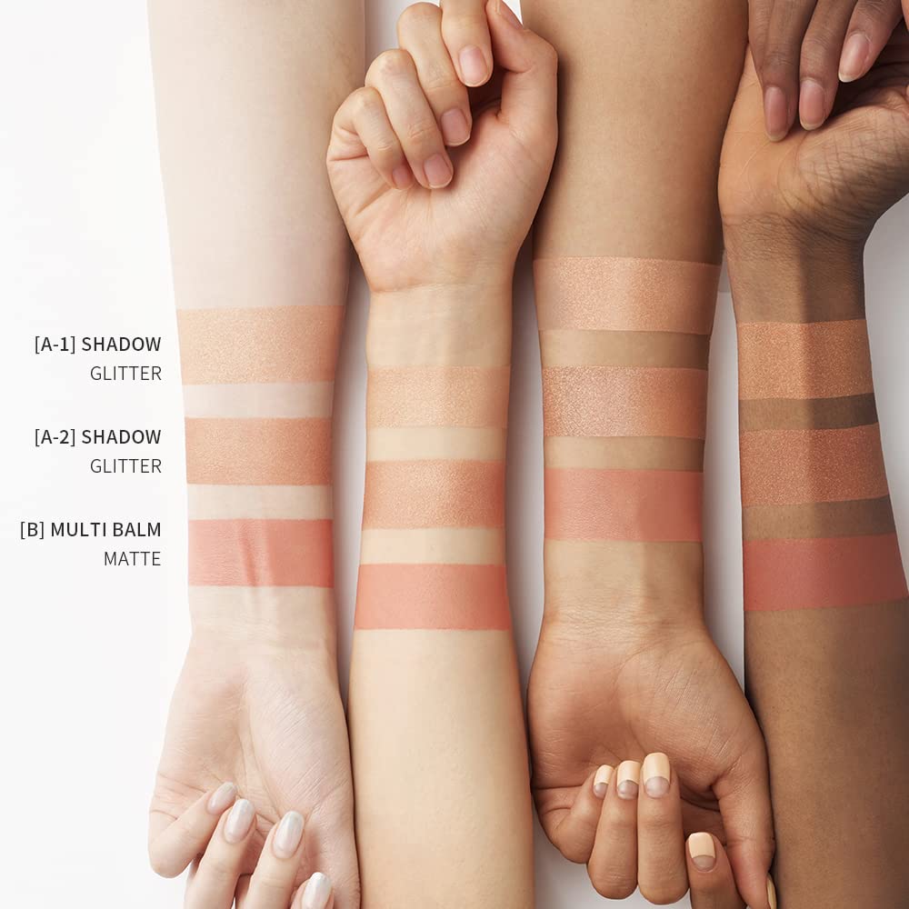 - All-in-one multi-use palette with versatile balm and powder formula with matte to glitter finishes that can be used on eyes, cheeks and lips