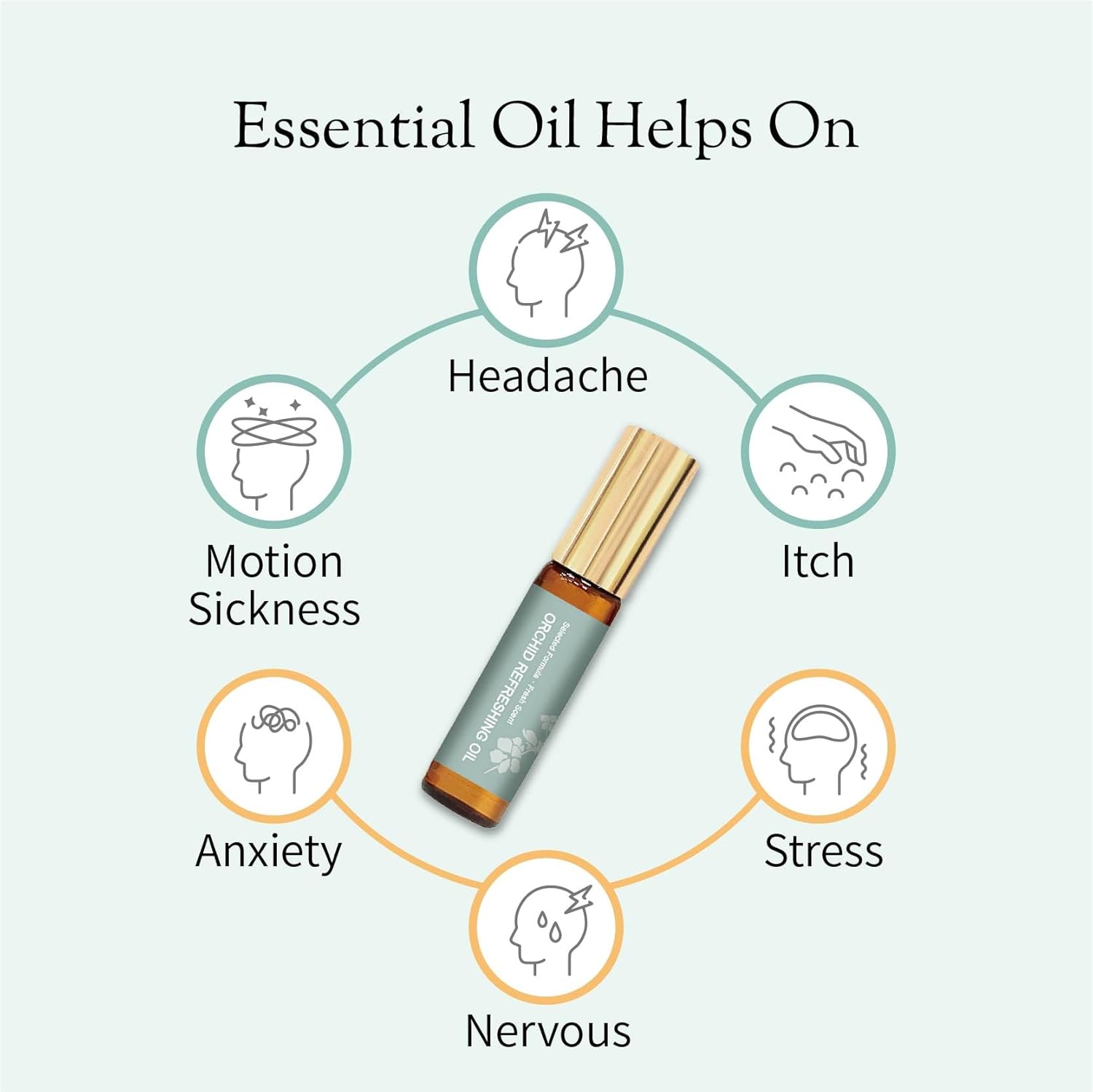 Organic and Kid-Friendly Essential Oil Blend Roll on for Stress Relief, Headache, Itch Relief and Heat Stroke, Includes Orchid, Menthol, Peppermint, Eucalyptus, Wintergreen, 5 ml.