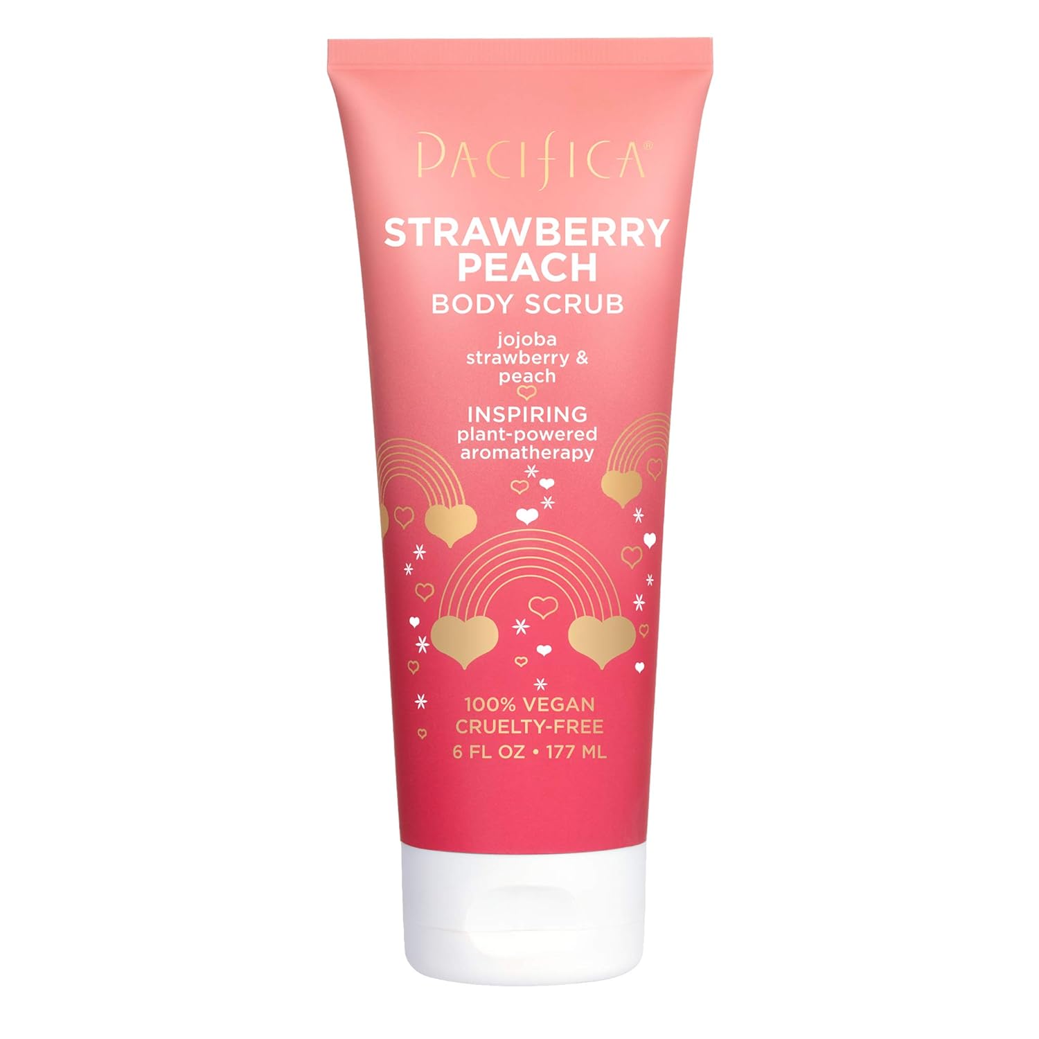 Pacifica Strawberry Peach Body Scrub, Gently Exfoliates & Polishes Dead Skin, For All Skin Types, Ven & Cruelty-Free, 6 Fl Oz