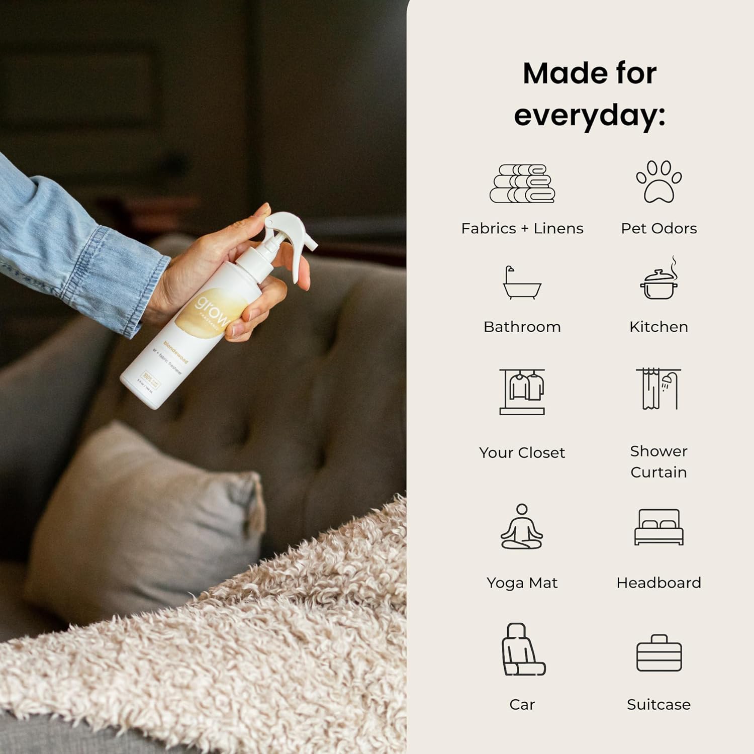 - Purity & Wellness: With Grow Fragrance, you can trust in the superior pure quality of our ingredients. Our sprays are made with meticulous attention to detail, ensuring consistency and excellence in every bottle. Experience the difference of our simply glorious fragrances, derived from nature and free from synthetic additives. Create a calming oasis at home with this conscious solution for all your air freshening needs.