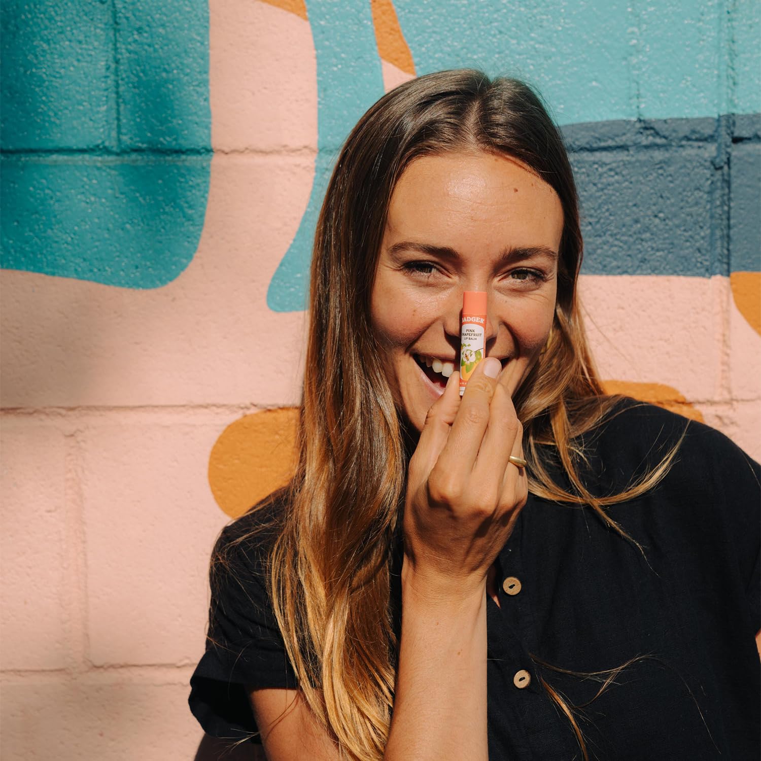 - PINK GRAPEFRUIT LIP BALM: A light refreshing blend of organic grapefruit & orange essential oils provide a bright citrusy note to this uplifting lip treatment for dry cracked lips. Great for all ages
