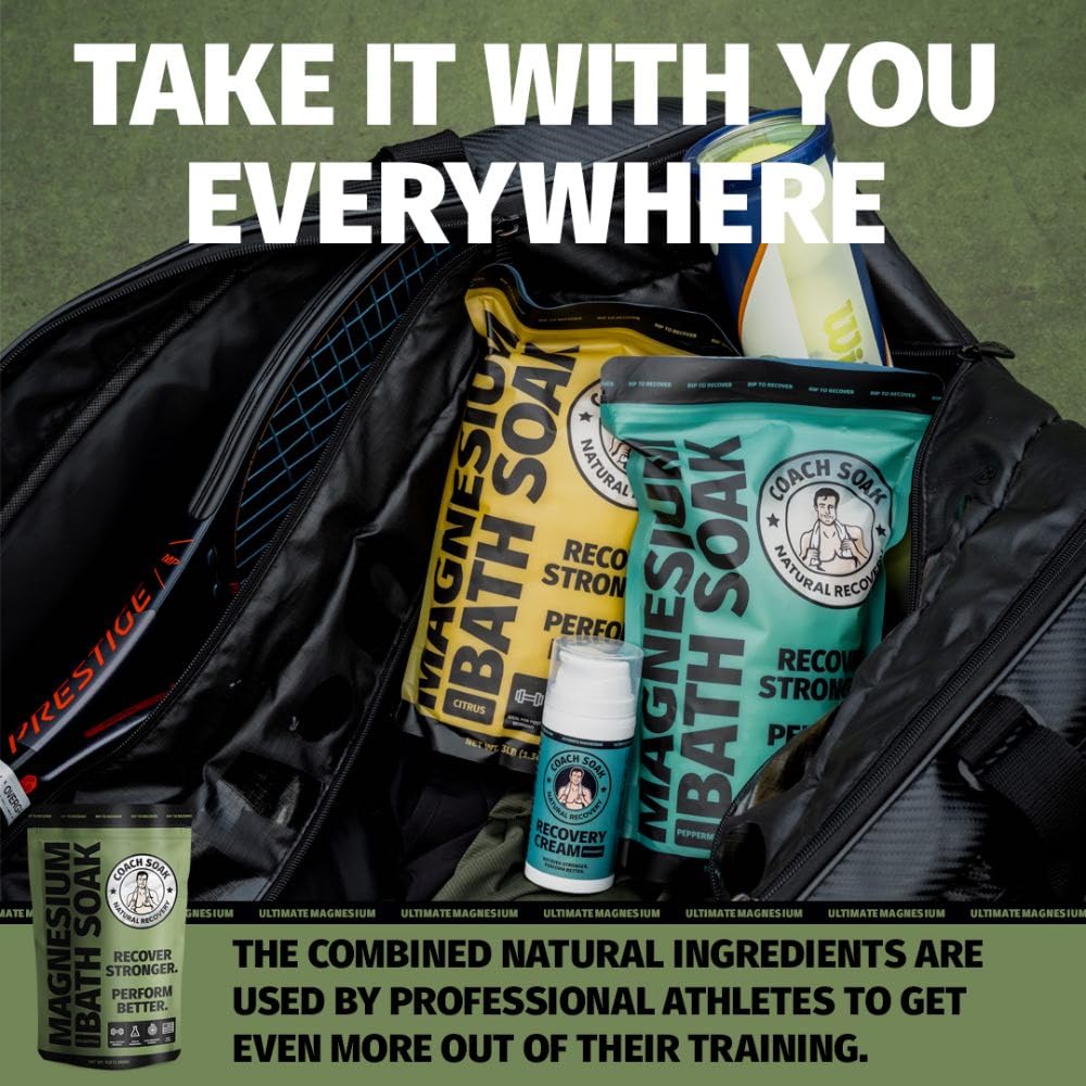 Coach Soak: Recovery Bath Soak – Rejuvenating Post Workout Natural Magnesium Flakes - 21 Minerals, Essential Oils & Dead Sea Bath Salts - Absorbs Faster Than Epsom Salts, 3lbs (Eucalyptus Tea Tree)