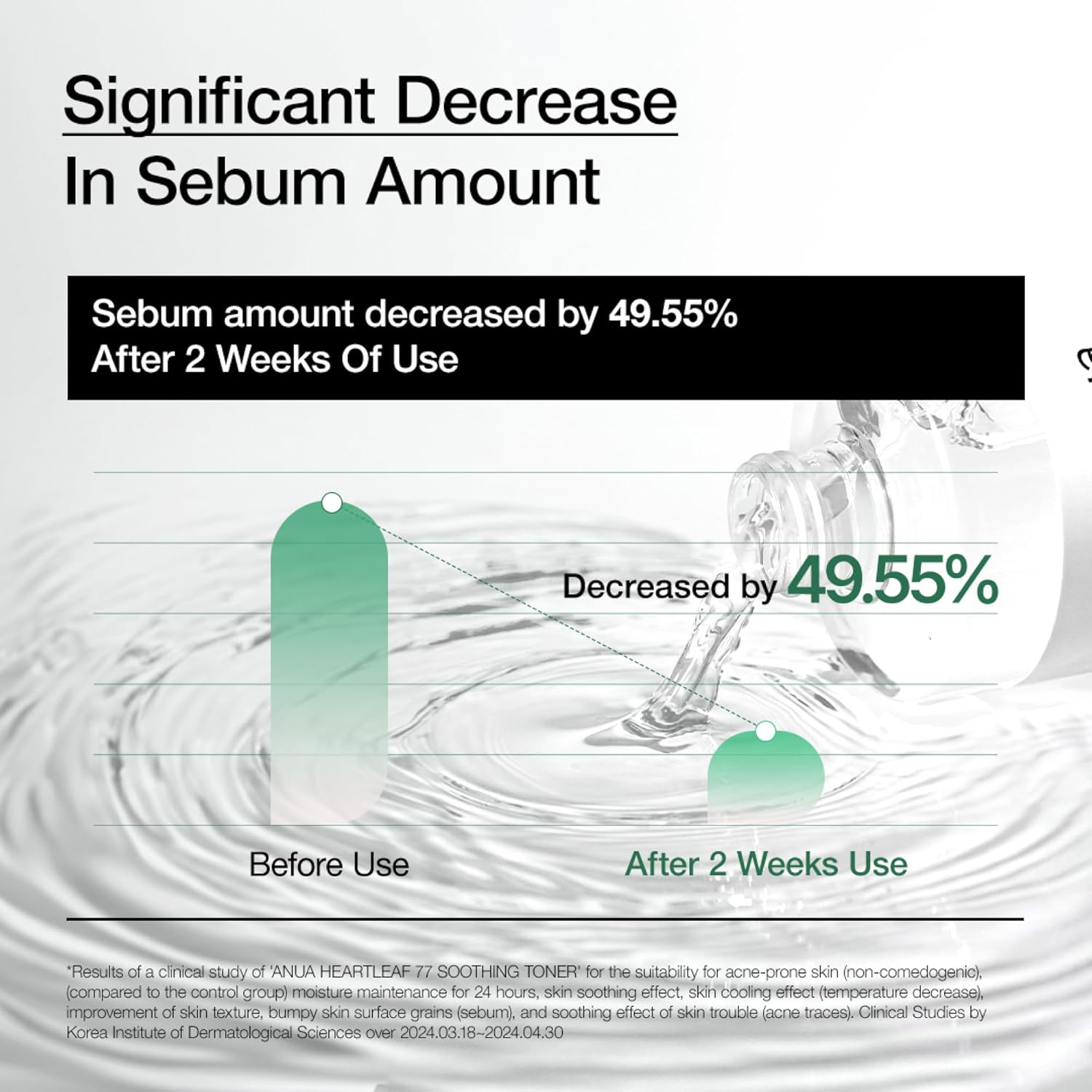 - ✔️Excellent Skin Trouble Care. This is the toner that contains houttuynia cordata extract to the highest level, which is good for skin trouble care. Heartleaf is very effective for calming skin troubles.