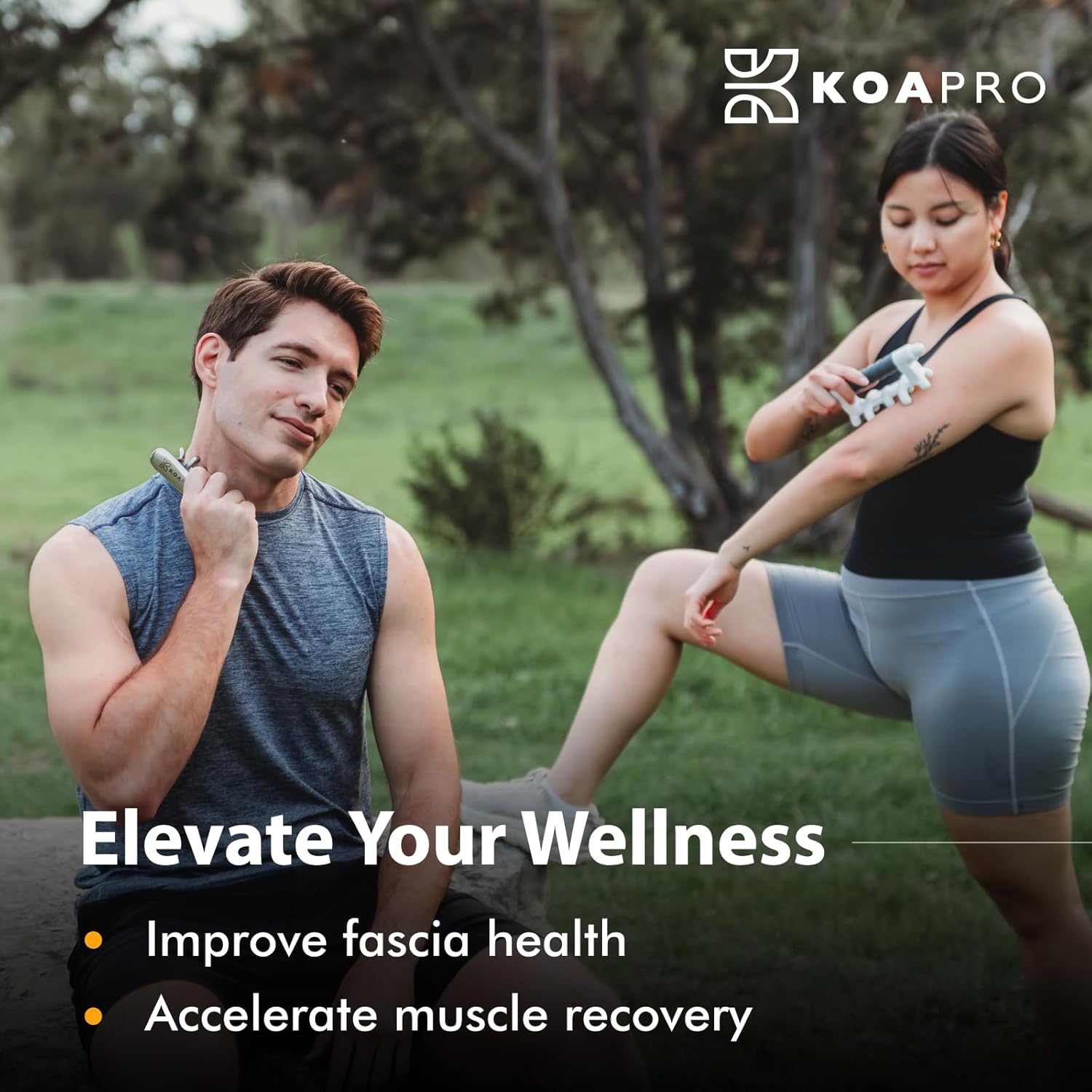 - THE KOAPRO PROMISE: Balance your chi & natural energy flow; improve your muscular health and performance with our massage oils & fascia tools. Experience LIFE CHANGING results as described by our many fans. Use it on another or for self massage, put it against a wall and lean against it for pain relief, apply the tips to pressure points and muscle knots, or ease a tight body part. Brush areas to enhance circulation & release stress. Our durable massagers are built to last! Utility Patent Pending. Design Patent granted