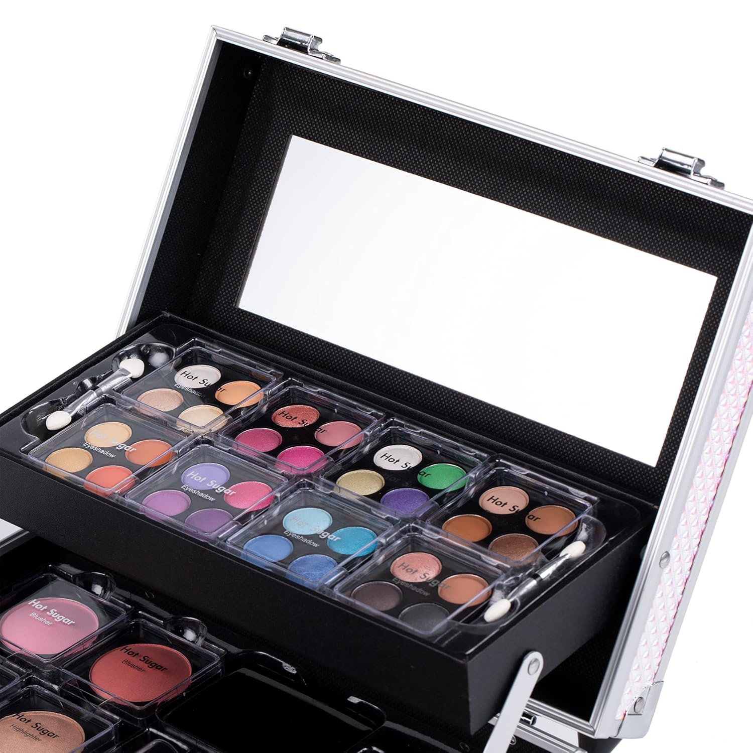 Hot Sugar Makeup Kit for Women Full Kit Teen Girls Starter Cosmetic Gift Set with Cute Mermaid Train Case Includes Pigmented Eyeshadow Palette Blush Lipstick Lip Pencil