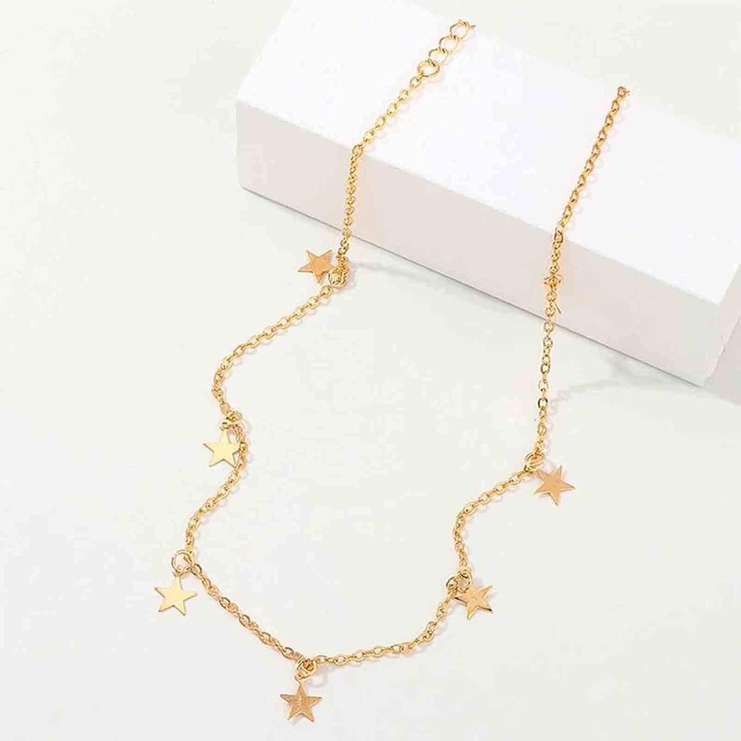 Boho Star Choker Necklace Gold Star Dangle Necklace Chain Short Minimalist Necklace Gold Collarbone Necklace Jewelry for Women Gifts