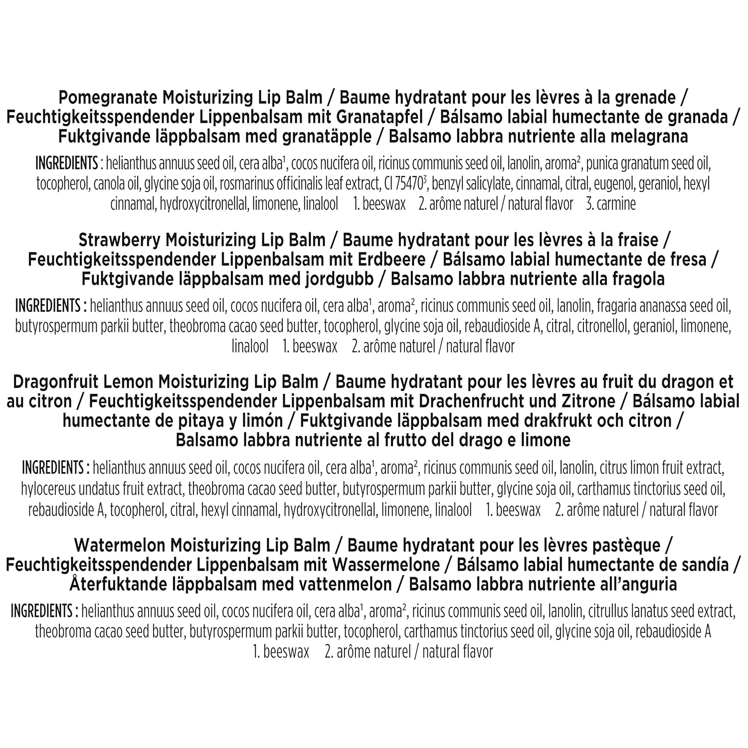 - MOISTURIZING GIFT SET: Everything you need for naturally beautiful lips, Burt’s Bees Moisturizing Lip Balm comes in four flavors: Strawberry, Dragonfruit Lemon, Pomegranate and Watermelon
