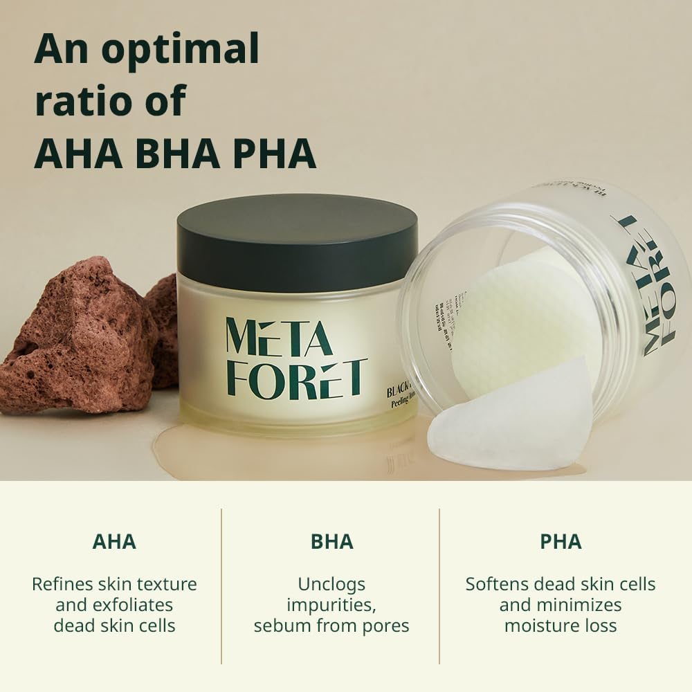 METAFORET Black Lemon Peeling Toner Pad 60 Sheets/Facial exfoliating Pads, Perfect Solution for Dead Skin Cells, Non-irritating Moisture Boost Toner
