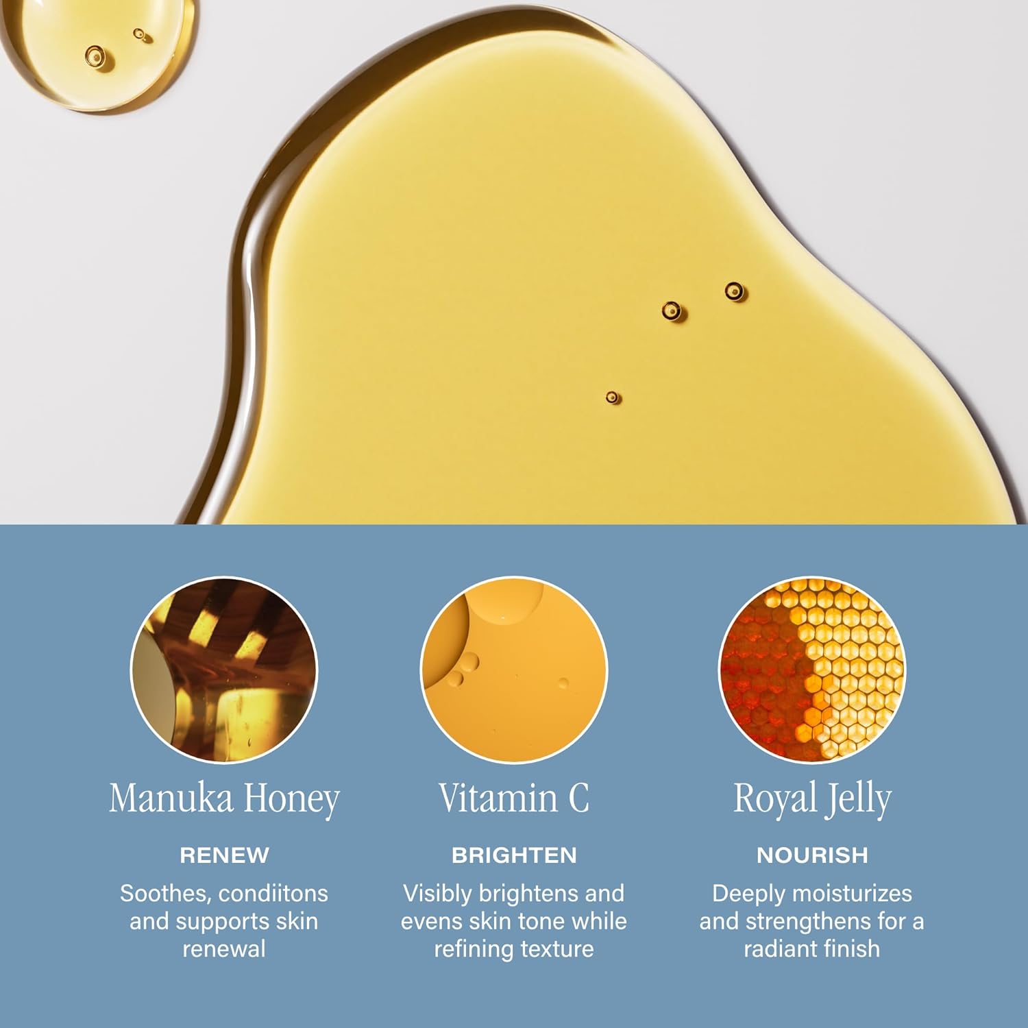 - Envelop Skin in Opulent Moisture: Filled with deeply moisturizing and nourishing ingredients including Manuka Honey, Propolis, Royal Jelly, Pollen Extract, Vitamin C, Prickly Pear Seed Oil, Meadowfoam Seed, Bilberry Seed, Sea Buckthorn Oils, Kendi, Lupine, and Immortelle Oils.
