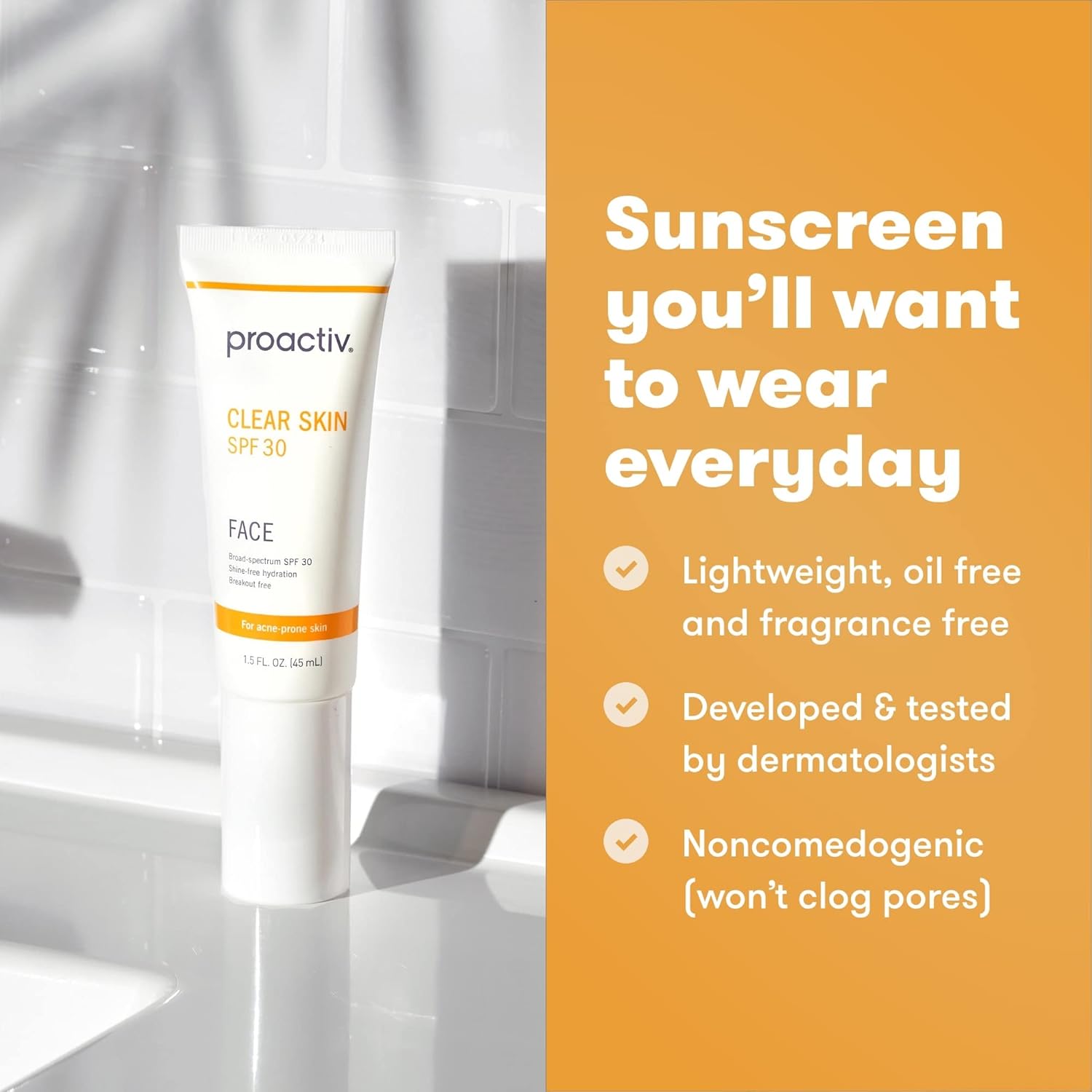 Proactiv Clear Skin Face Sunscreen Moisturizer With SPF 30 - Hydrating SPF Lotion And Sensitive Skin Sunscreen For Oily Skin And Acne-Prone Skin, Oil Free Matte Skincare Sunscreen, 1.5oz
