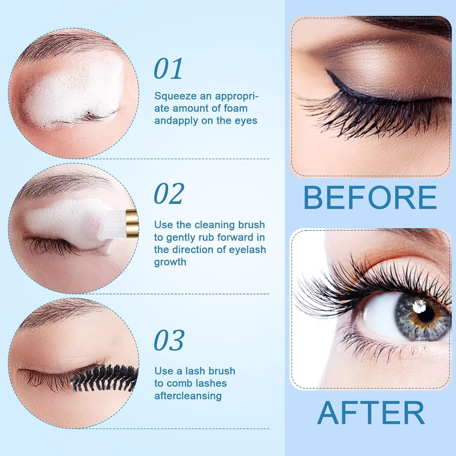 - γPortable Eyelash Shampoo BottlesγThese about 60ml foam pump bottles are made of PET material, and the spring-loaded button ensures that there is enough liquid to spray into a foam. You can make your own lash cleanser as a gift to a new client's lash extension cleanser. It is also the perfect container for trips, excursions, trips.