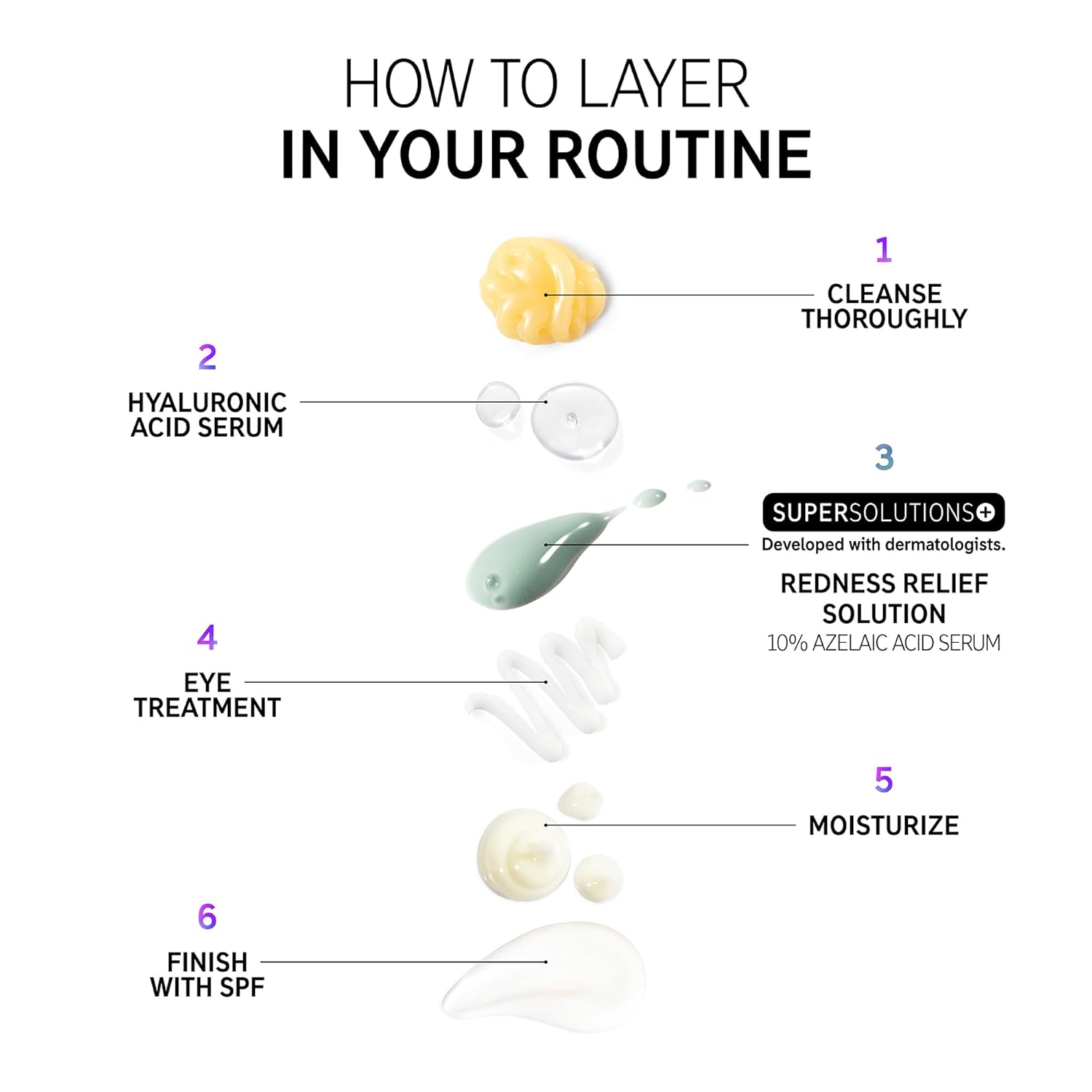 - Formulated with 10% Azelaic Acid to visibly reduce the appearance of redness and soothe skin that feels irritated.