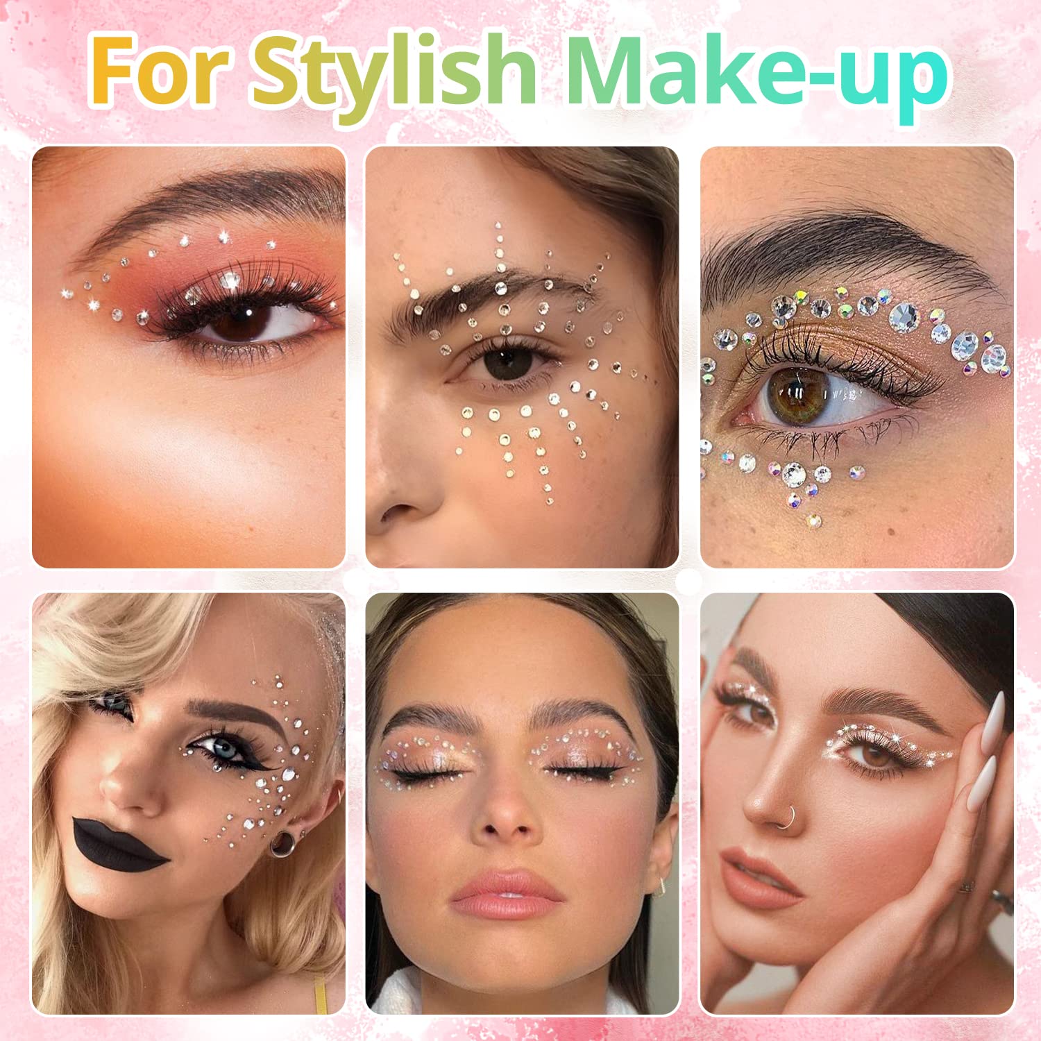 - ๐CONVENIENT MAKEUP GLUE -- The equipped glue is quick dry and do not need UV curing. The viscosity is moderate that is enough to secure the gems to your skin and is easy to remove. You can use it to apply face gems, chunky glitter and false eyelash.