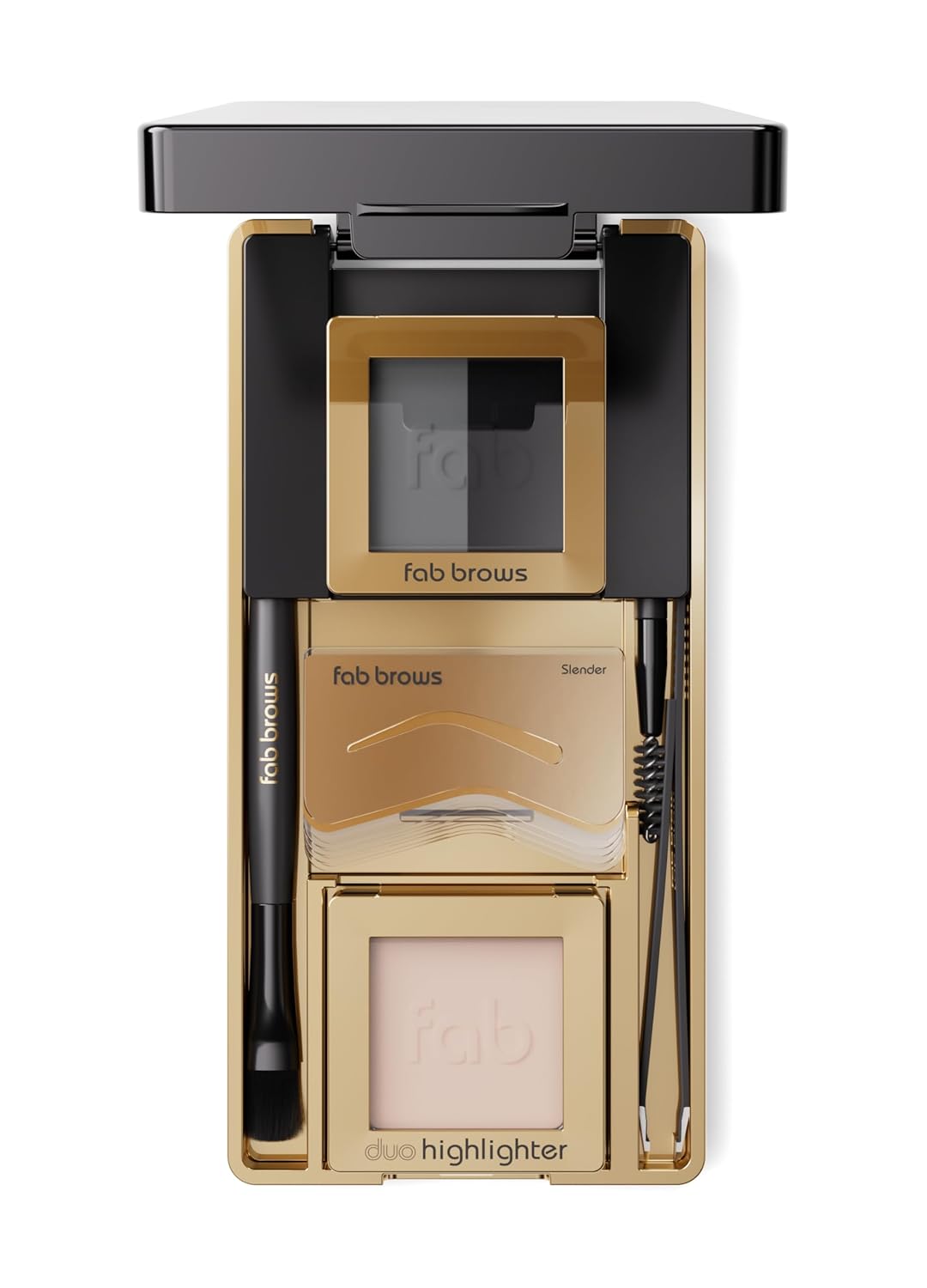 - WELL-DEFINED BROWS: The Fab Brows Duo Stencil Eyebrow Kit now comes in a LUX version! This eyebrow shaper allows you to achieve perfectly shaped brows in no time! The brow powder creates a natural, realistic effect to fill sparse areas and create well-defined brows.