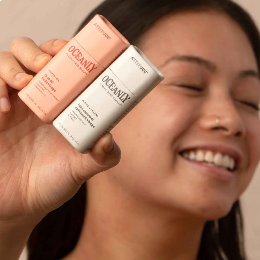 ATTITUDE Oceanly Aging Skin Daily Facial Care Routine Box Set, EWG Verified, Plastic-free, Plant and Mineral-Based Ingredients, Vegan and Cruelty-free, PHYTO AGE, Set of 4 Travel Size Bars