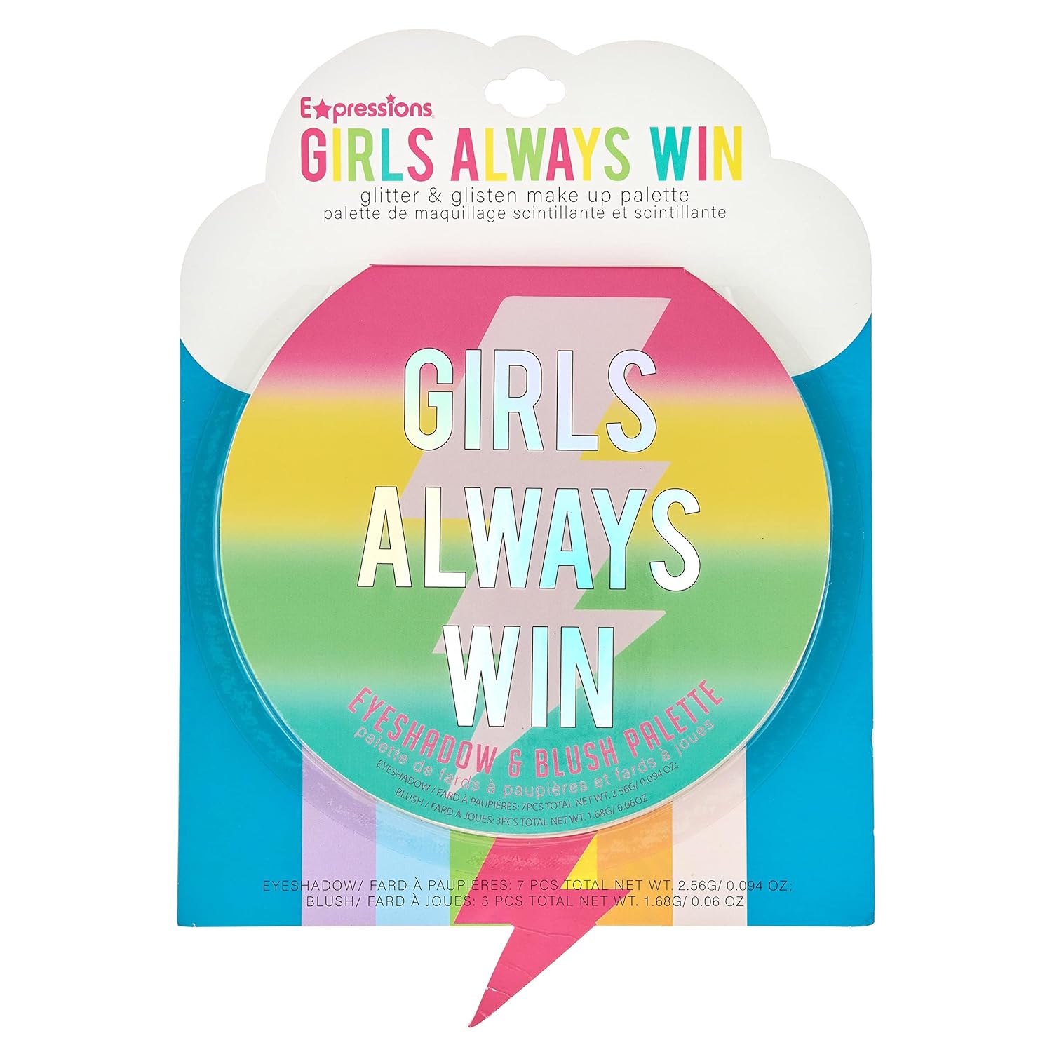 Expressions Girls Always Win Glisten & Glitter Makeup Palette 10 Color Eyeshadow Palette & Blush Makeup Novelty Beauty Set, Fold Out Compact with Mirror, Washable, Non-Toxic