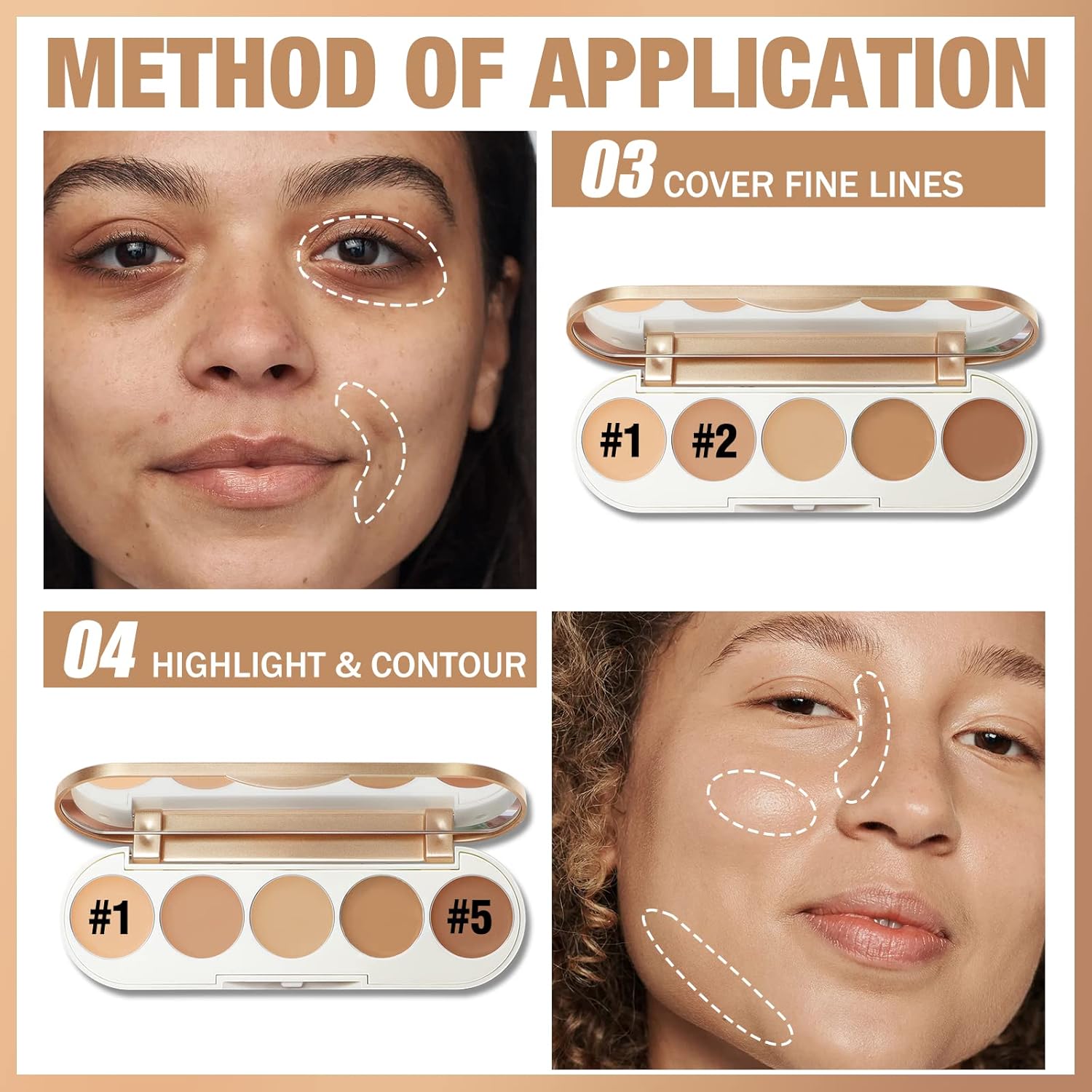 - MULTI-FUNCTION: Layer, blend, and define your facial features with these 5 creamy shades. The light colors balance the skin tone, and the medium shades are perfect for under-eye areas and blemishes. You can also mix them together to build a 3D makeup effect.