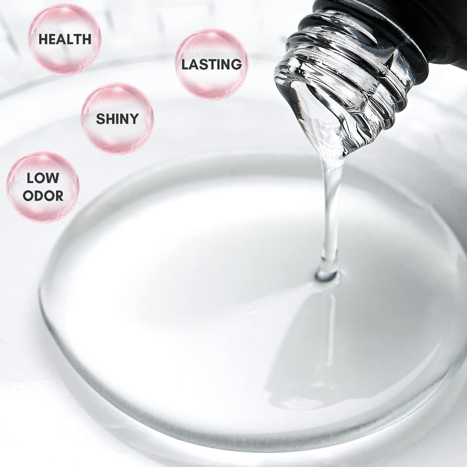 - 【Upgrade Healthy Formula】The clear gel top and base coat is made of natural resin, non-toxic, low odor, cruelty-free, no hram to nails and skin.No irritating ingredients or adhesives that cause nail damage, ensuring you enjoy a healthy nail art process.