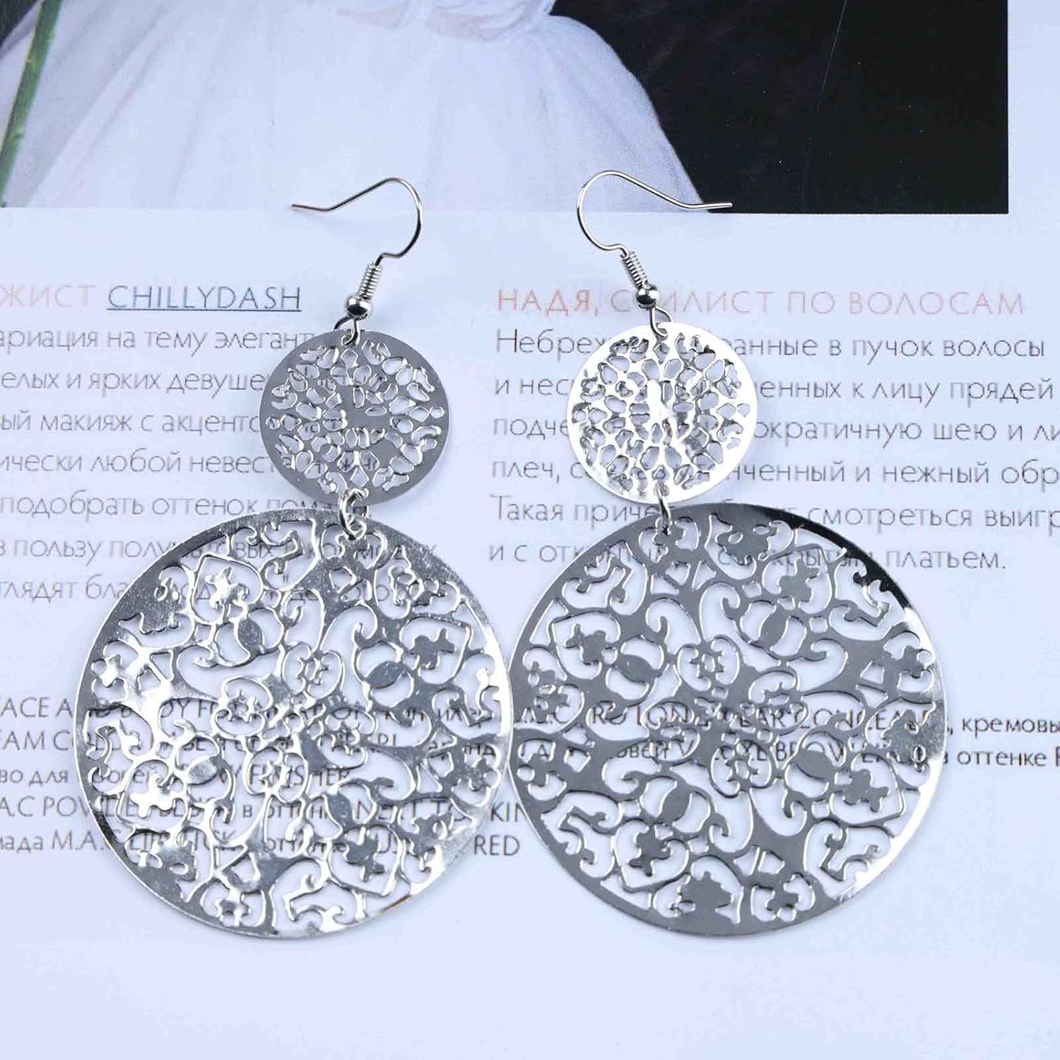 - 【Unique Design】This is a fashionable bridal tassel disc earrings, hollow pattern circle dangle earrings, nightclub party earrings are very popular with girls.