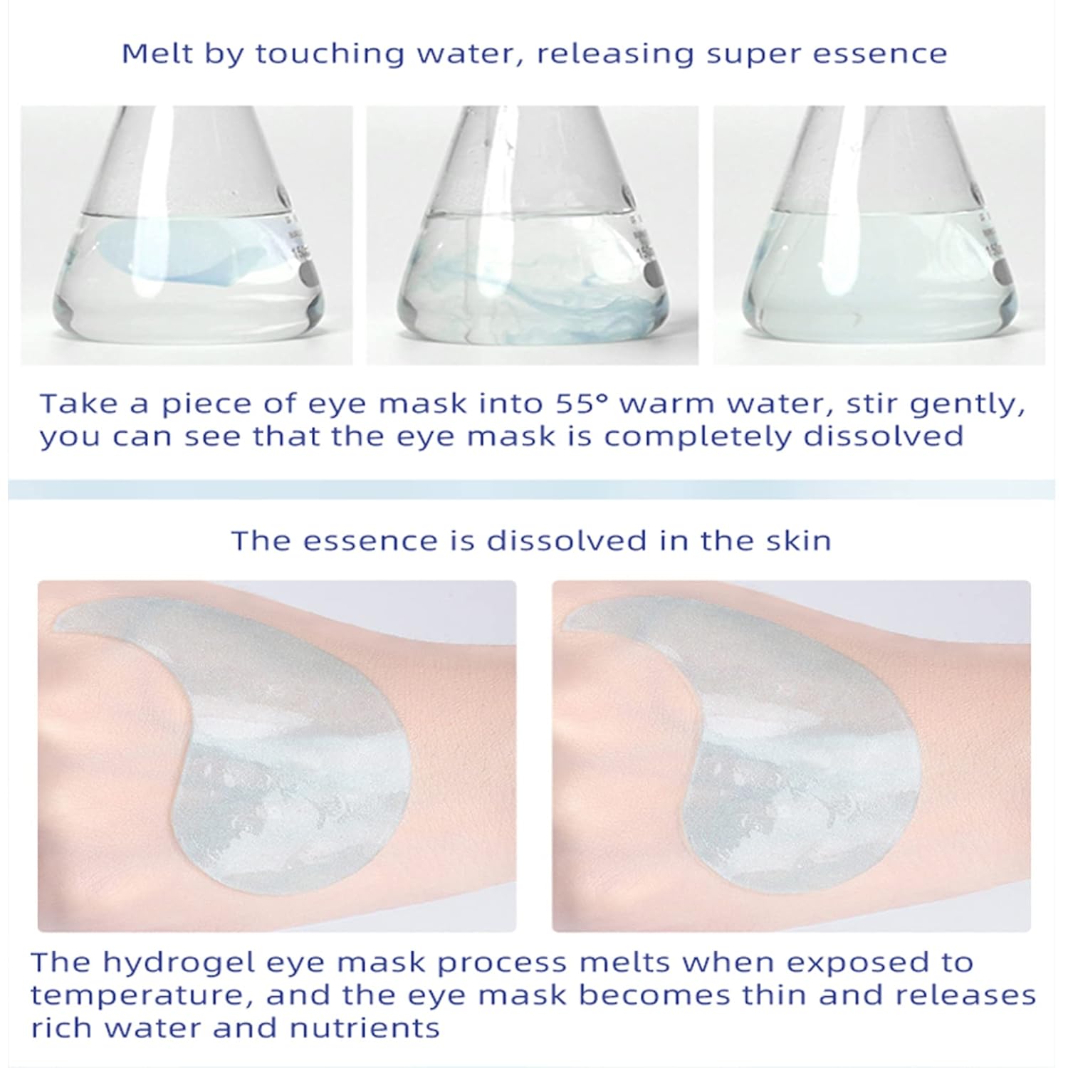- Hyaluronic Acid Eye Mask: As we know the hyaluronic acid has an excellent moisturizing nourishing power, so that the skin is more smooth, soft and moisturizing.The hyaluronic acid gel eye patches can remove eye fine lines in a short time, relieve eye bags and dark circles, moisturize, firm, and smooth the eye skin, and improve the elasticity of the eye skin.