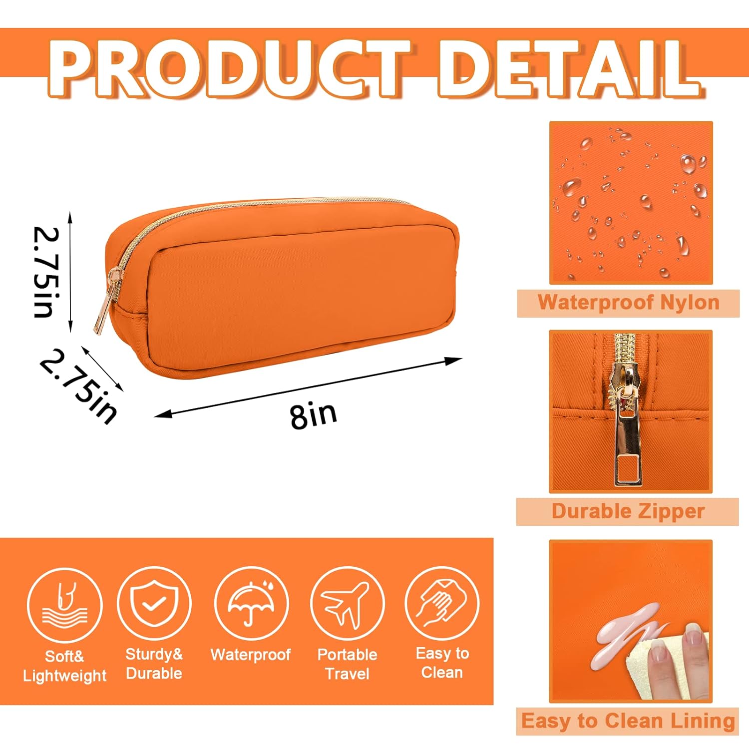 Small Pencil Case Makeup Bag for Purse, Cute Pencil Pouch Preppy Nylon Makeup Brush Bag with Zipper, Girls Portable Stationery Storage Case Small Pen Bag for Office School College(Slim-Peach)