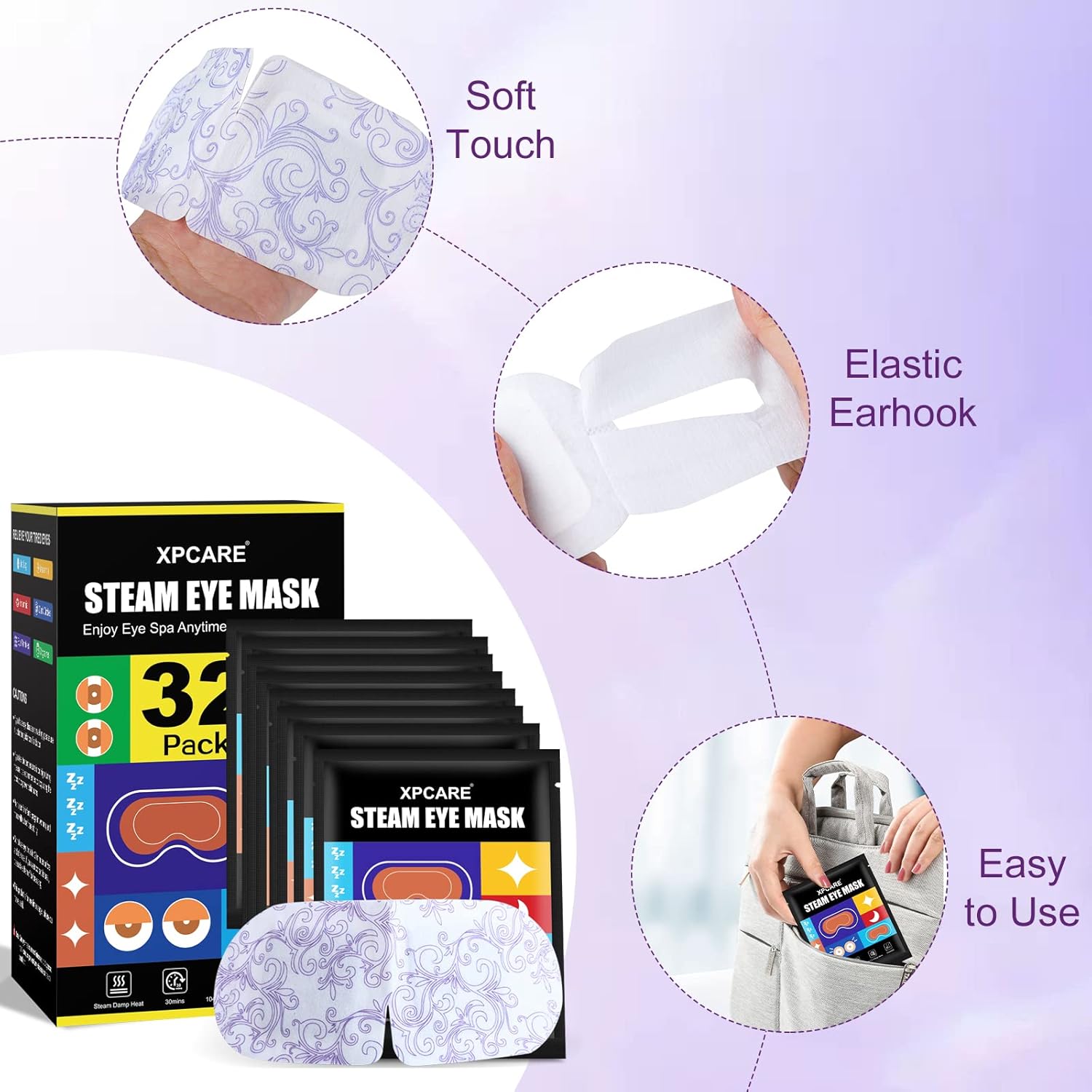 XPCARE 32 Pack Steam Eye Masks for Dry Eyes, SPA Warm Sleep Eye Mask, Disposable Heated Eye Mask for Dark Circles, Puffy Eyes, Relief Stress Eye Fatigue(Unscented)