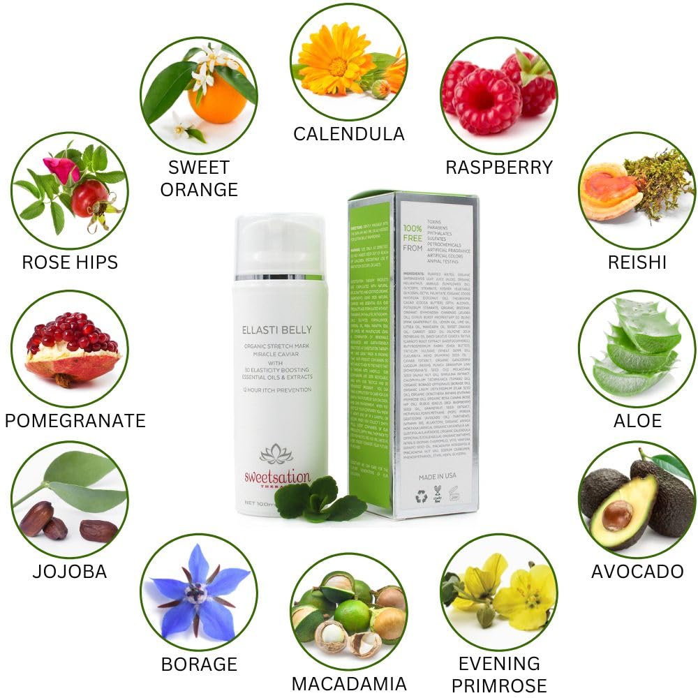 Ellasti Belly Organic Stretch Mark Miracle Caviar, 3.3oz Prevent stretch marks during pregnancy. Boost skin elasticity.
