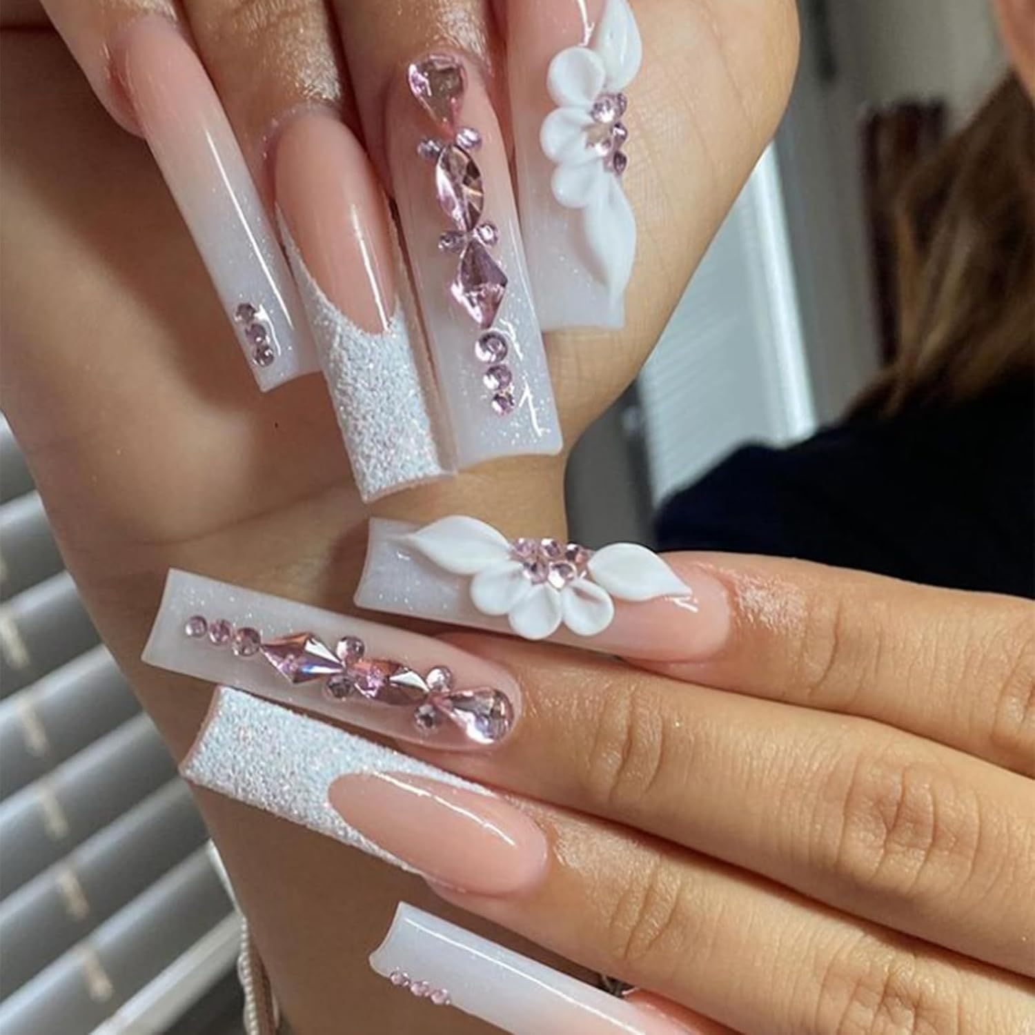 HNUIX Nail Rhinestones - 3D Multi Shape Size Crystal, Light Pink Nail Gems, Flat Back, with Kit, for Nail Art, DIY Decorations