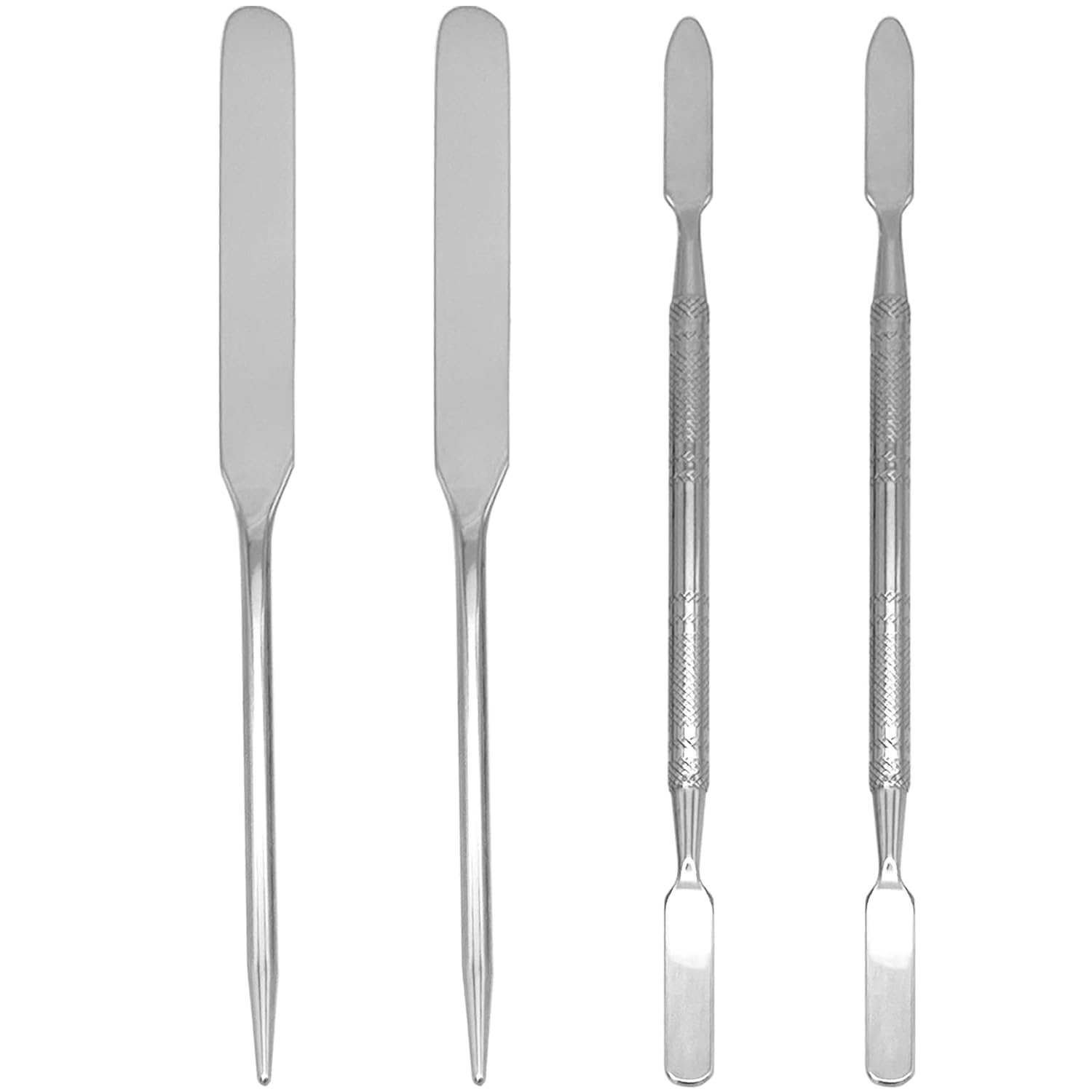 - Wide Applications Tool: This stainless steel lab spatula can be used for mixing foundations. It is also suitable for blending lipstick or eyebrow, nail art paint, nail polishes, pigment, lash adhesive, etc.
