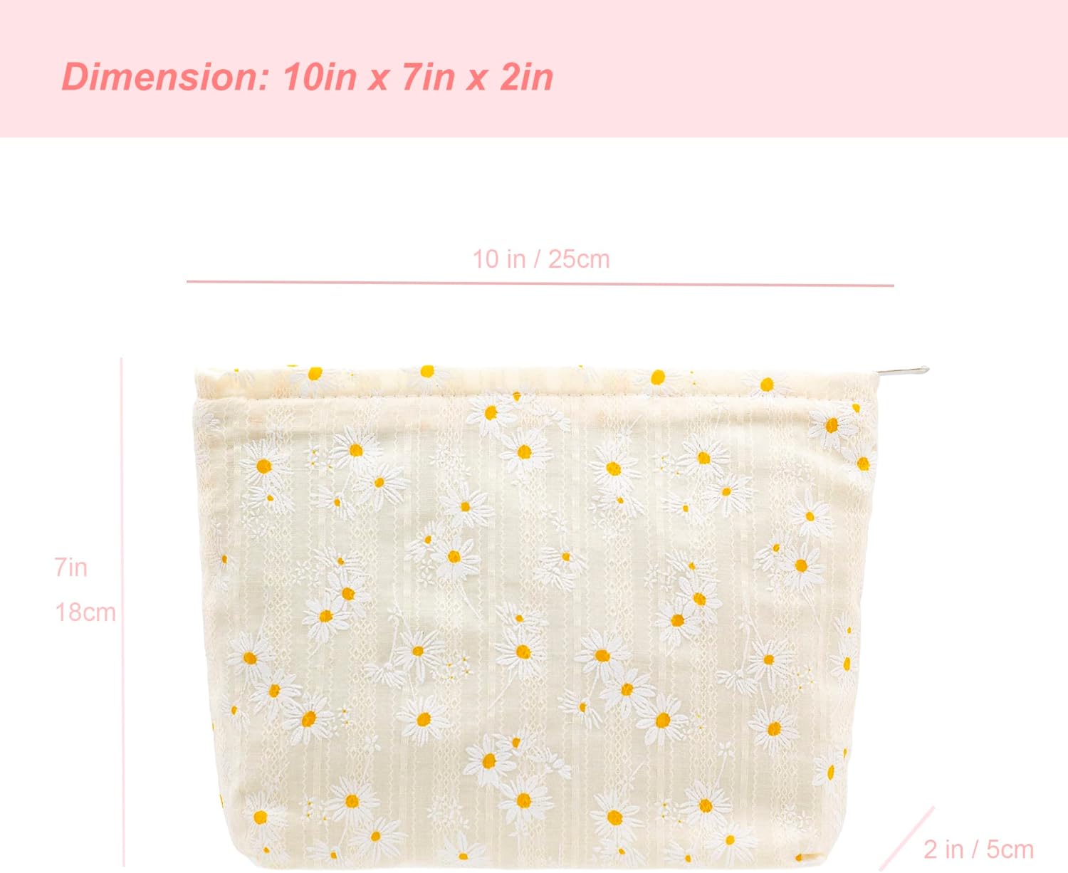 PAZIMIIK Floral Makeup Bag Large Cotton Zipper Pouch for Purse Travel Canvas Make Up Organizer for Women Cosmetic,Daisy Beige
