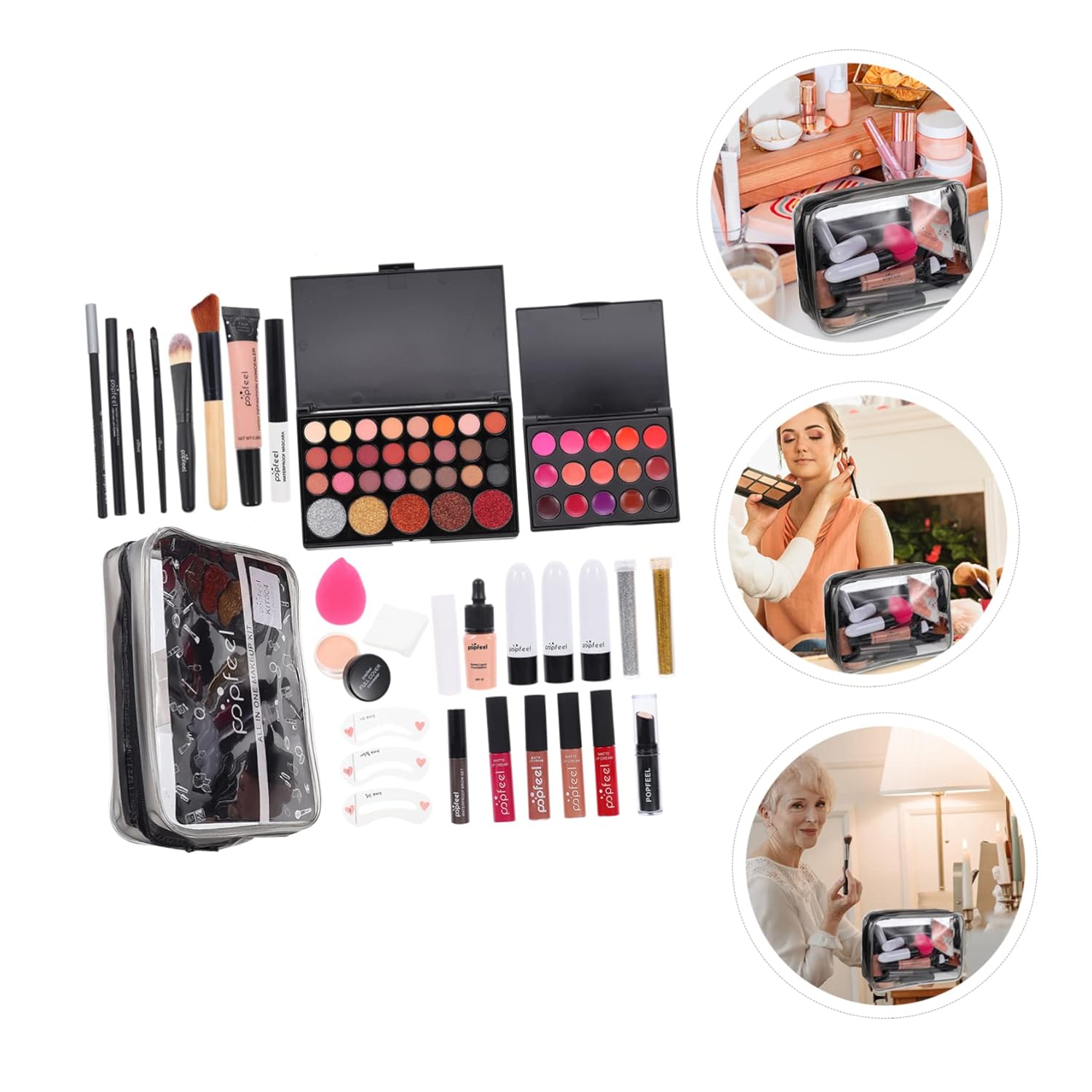 - MAKEUP KITS FOR WOMEN-- Easy to carry, there will be a cosmetic bag, you can put all the kits inside and take together, convenient and complete