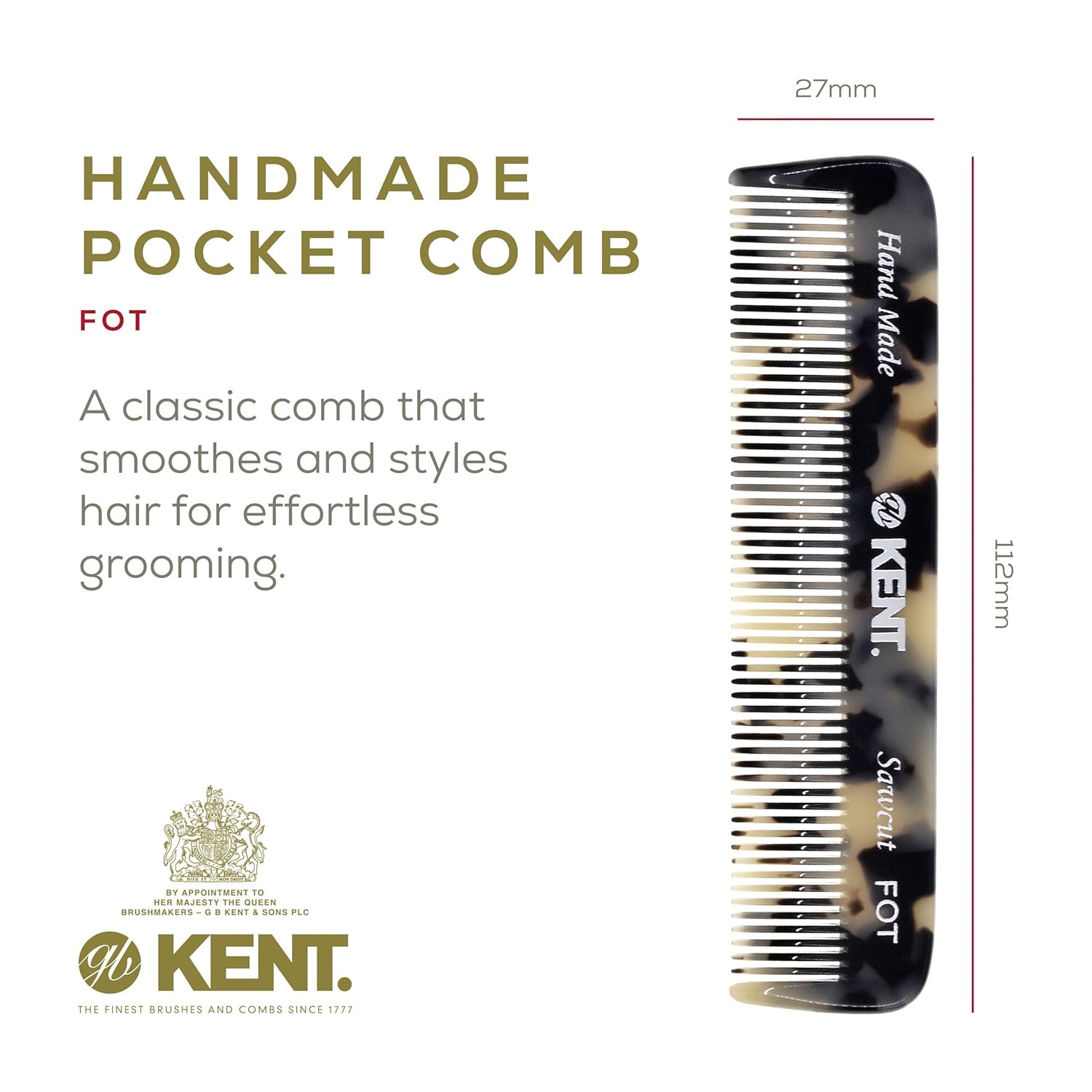 Kent FOT TW Handmade Fine Tooth Comb, Pocket Travel Comb for Men's Styling, Mustache, Beard Care, and Fine or Thinning Hair