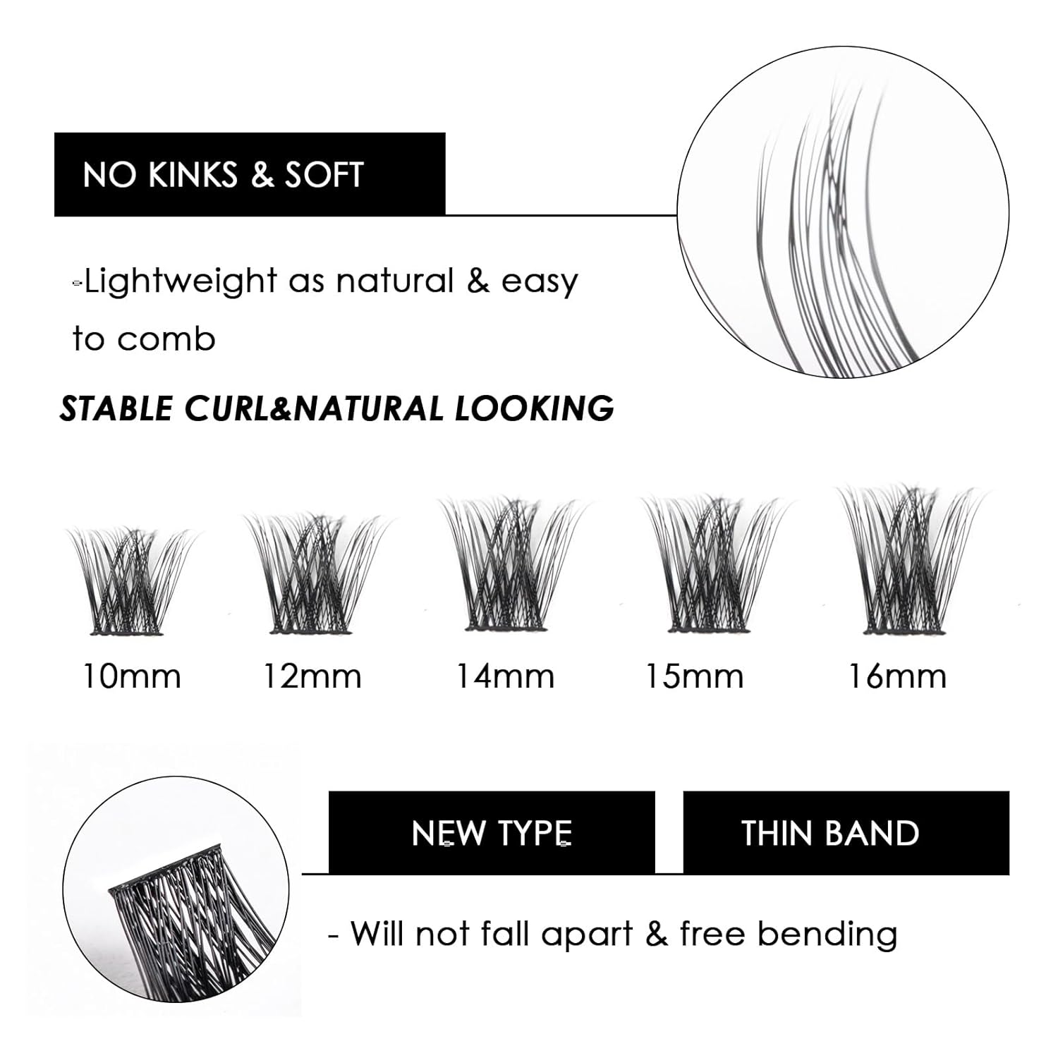 - 🌼Comfortable And Natural-Looking:These lash clusters are comfortable to wear. To apply them, pinch the band of the cluster lash extensions with tweezers and apply them on your natural lashes. The mixed-length band of the clusters won't poke your eyelids, ensuring a comfortable wearing experience.