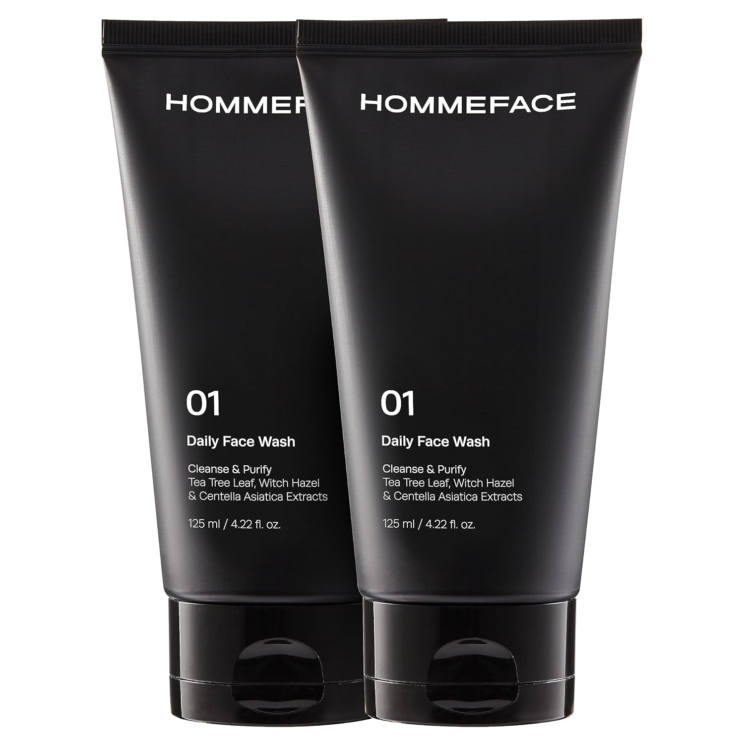 HommeFace 2-Pack Daily Face Wash for Men, Gentle Facial Cleanser for Deep Cleansing with Collagen, Hyaluronic Acid & Witch Hazel Extract