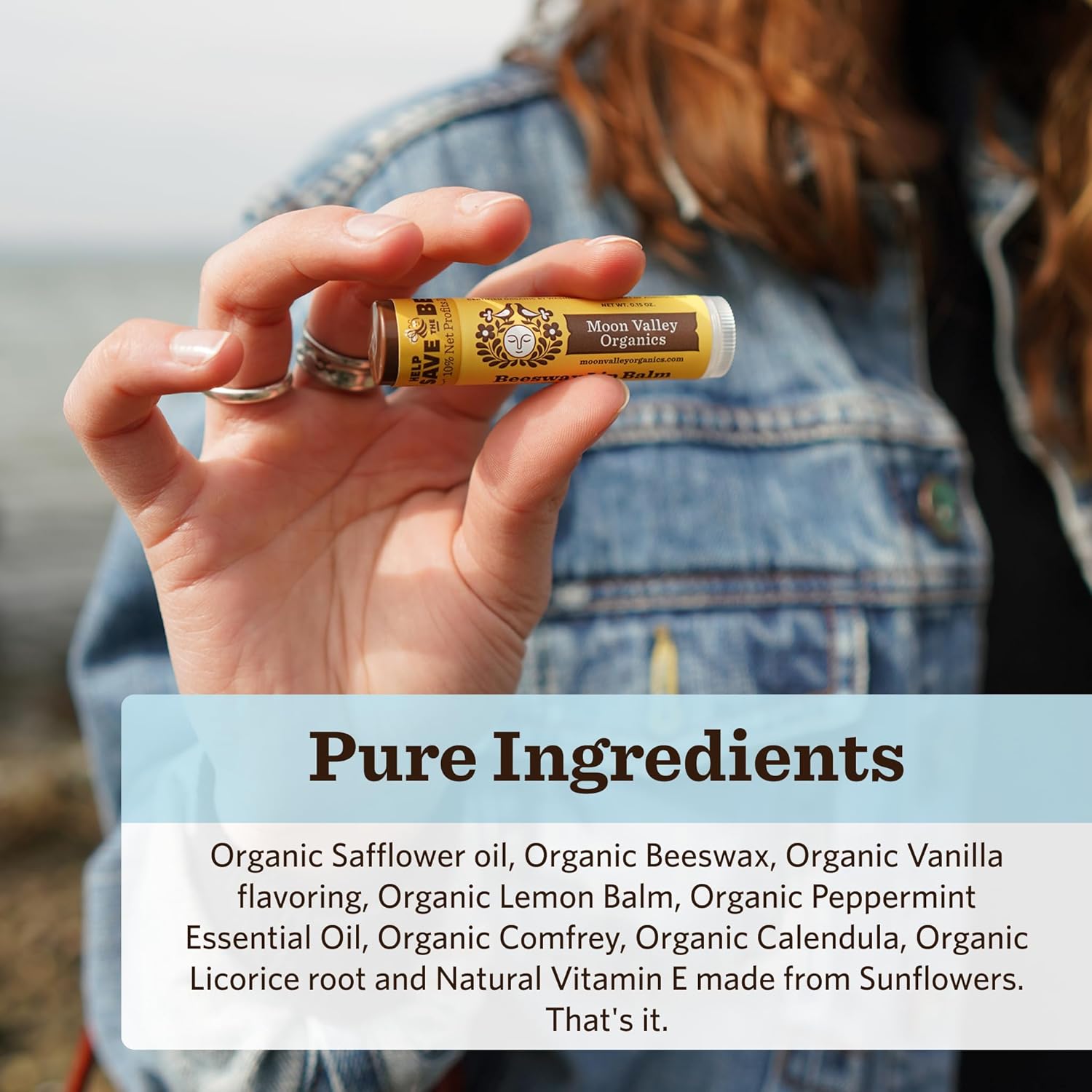 Moon Valley Organics Beeswax Lip Balm for Moisturizing Lips and Cuticles (COOL MINT VANILLA, 6-Pack)