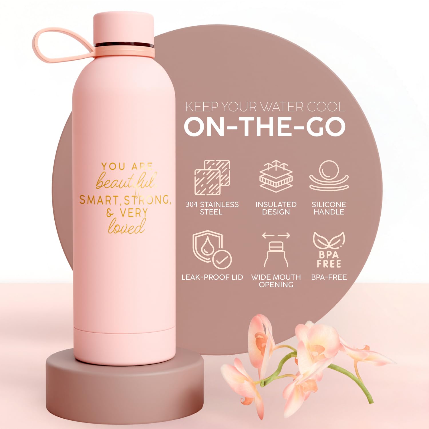 - WITH COMFY SOCKS & HIGH QUALITY WATER BOTTLE: Made of sturdy stainless steel, our water bottle keeps drinks cool on the go with a leak-proof lid, perfect for summer outings. Featuring an uplifting quote, "You are beautiful, smart, strong & very loved", brings her smile & happy mood every day. Plus, it is paired with cozy socks, transforming your loved one's routine into a rejuvenating ritual with every use.