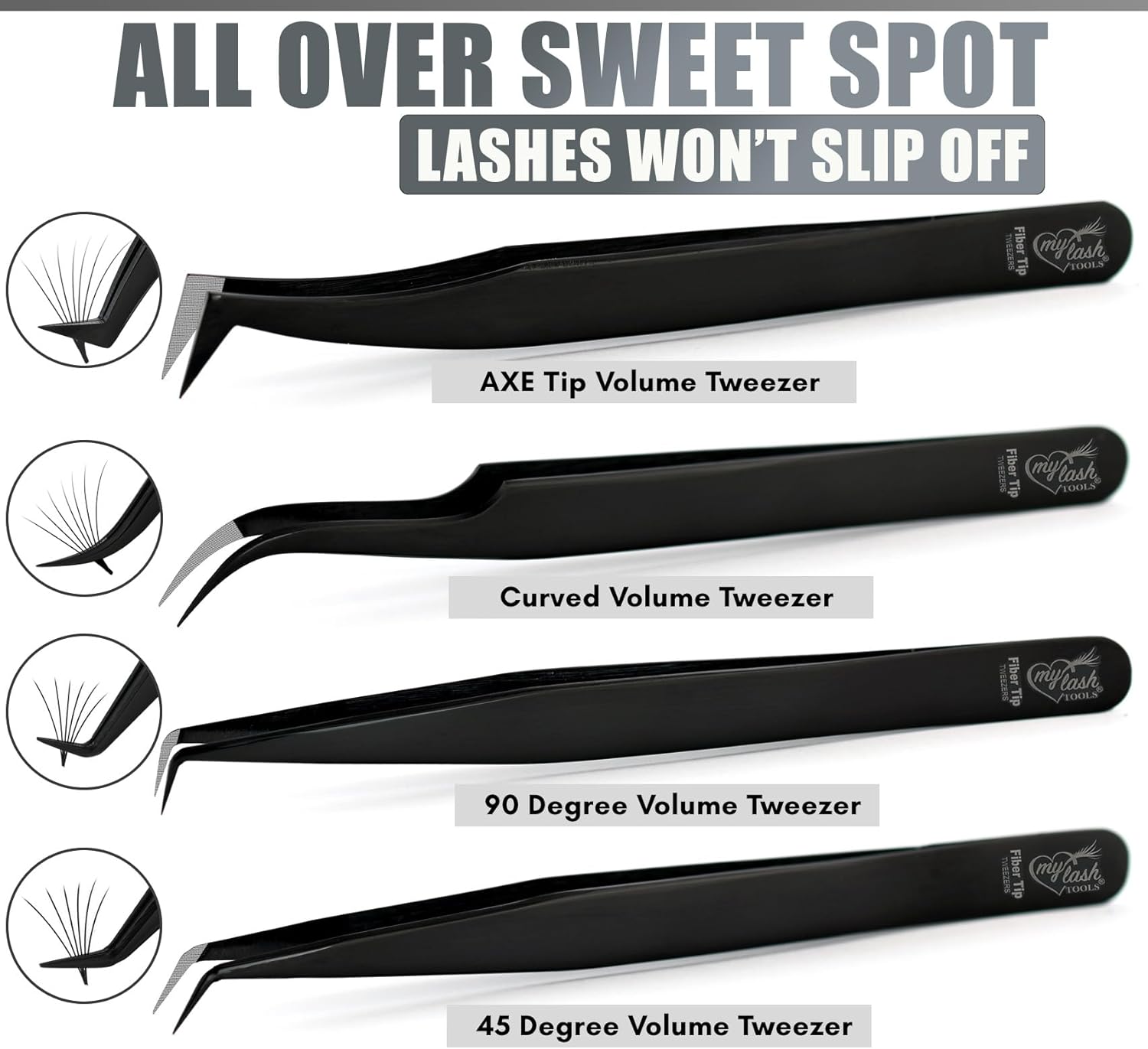 - COMFORTABLE TO USE - Perfect for all lash artistsβbeginners to pros. Lightweight, durable, and precise. Ideal for volume lashes, with a complete grip and all over sweet spot. Fiber tip tweezers are easy to carry packed in case. Your ultimate lash tech must-haves! Prefect for isolation & mega volume.