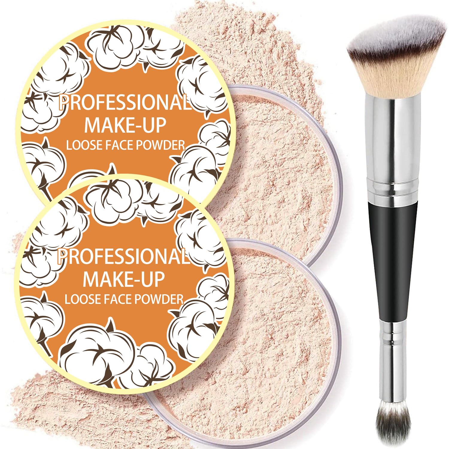 2PCS Loose Face Powder, Oil Control Minimizes Pores and Fine Lines, Loose Baking Face Setting Powder Makeup, Oil Control Soft Focus Effect Make Up, Matte Ultra Flawless Finish(04# Natural)