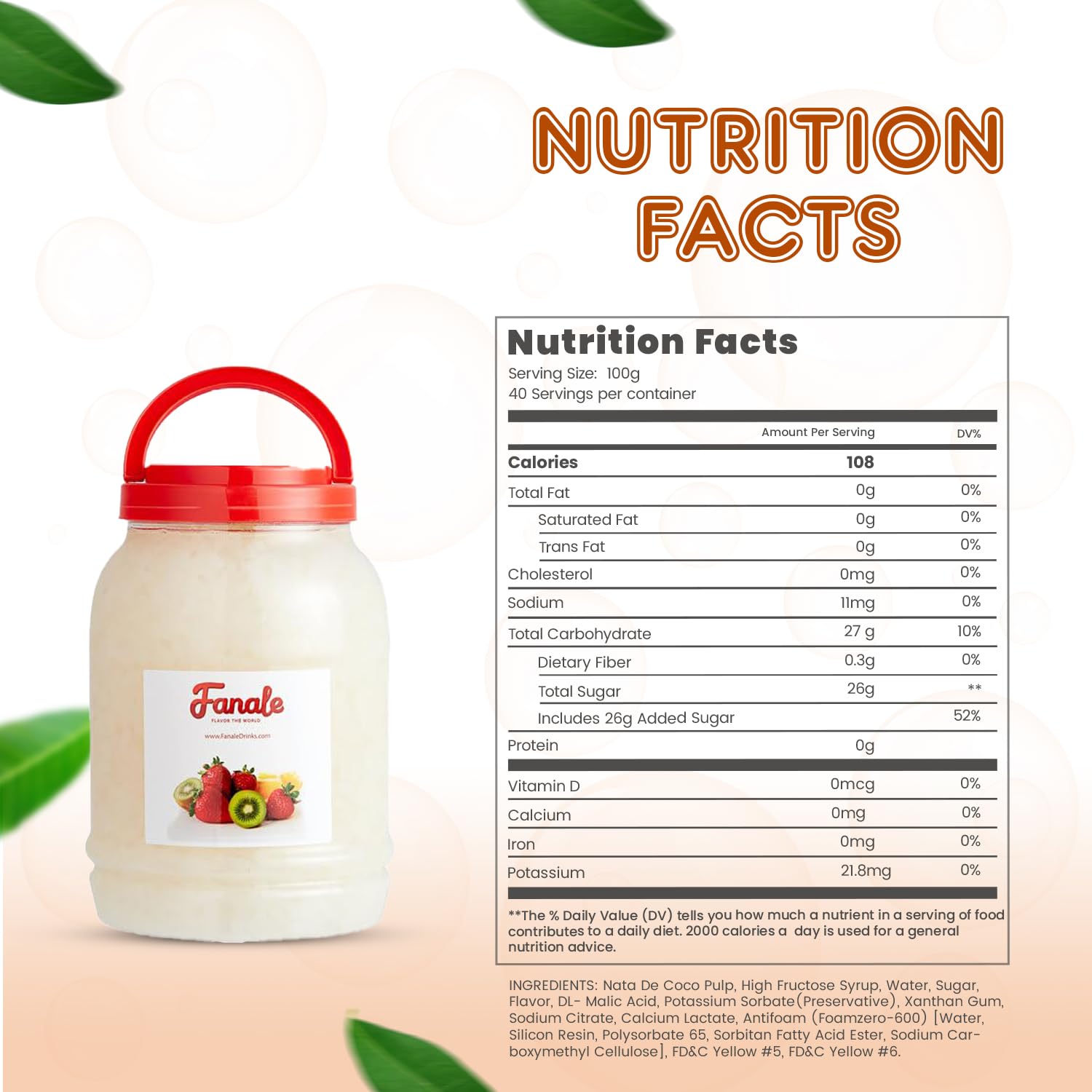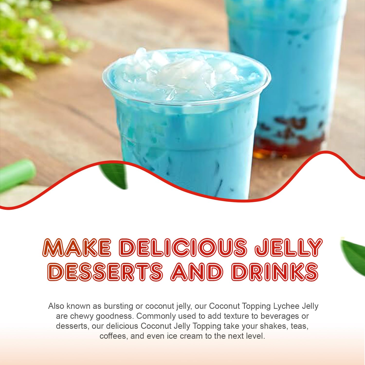 - 𝐍𝐮𝐭𝐫𝐢𝐭𝐢𝐨𝐮𝐬 𝐈𝐧𝐠𝐫𝐞𝐝𝐢𝐞𝐧𝐭𝐬: Our nata de coco jelly topping is made from the inner layer of coconut meat, making it delicious and nutritious. The coconut boba tea jelly topping retains many vitamins, minerals, and fiber inherent to coconut, making it a healthier option than many artificial or processed toppings.