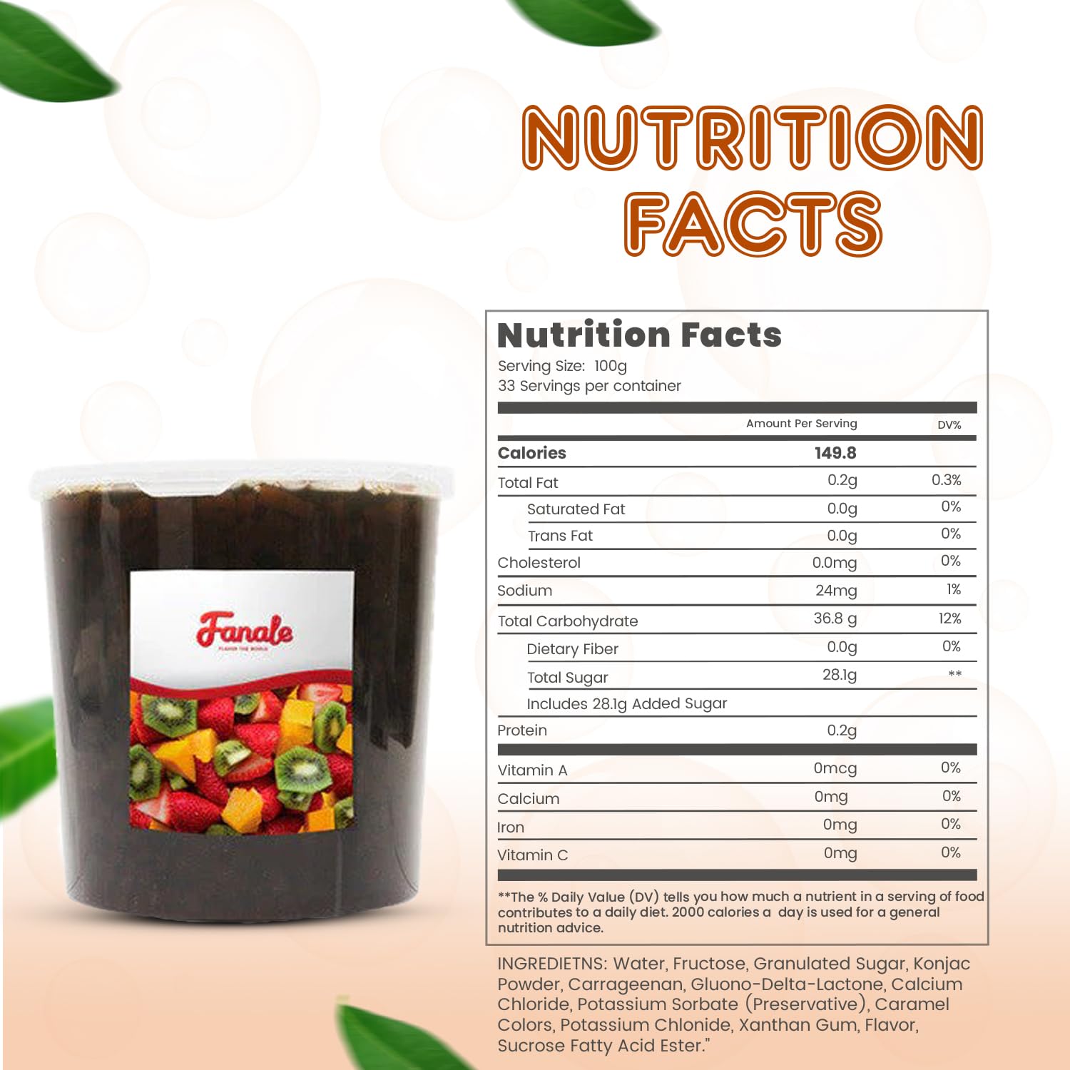 - 𝐕𝐞𝐫𝐬𝐚𝐭𝐢𝐥𝐞 𝐔𝐬𝐞: This boba tea jelly topping can be used in desserts like puddings, cakes, or tropical-themed pastries. It is also suitable for cocktails or mocktails, adding a unique texture and flavor to beverages and allowing chefs to experiment by using it as a base for creating innovative recipes. 𝐅𝐨𝐫 𝐲𝐨𝐮𝐫 𝐩𝐞𝐚𝐜𝐞 𝐨𝐟 𝐦𝐢𝐧𝐝, 𝐭𝐡𝐞 𝐩𝐫𝐨𝐝𝐮𝐜𝐭’𝐬 𝐞𝐱𝐩𝐢𝐫𝐚𝐭𝐢𝐨𝐧 𝐝𝐚𝐭𝐞 𝐢𝐬 𝐜𝐥𝐞𝐚𝐫𝐥𝐲 𝐩𝐫𝐢𝐧𝐭𝐞𝐝 𝐨𝐧 𝐭𝐡𝐞 𝐛𝐚𝐜𝐤 𝐨𝐟 𝐭𝐡𝐞 𝐩𝐚𝐜𝐤𝐚𝐠𝐢𝐧𝐠, 𝐞𝐧𝐬𝐮𝐫𝐢𝐧𝐠 𝐟𝐫𝐞𝐬𝐡𝐧𝐞𝐬𝐬 𝐚𝐧𝐝 𝐪𝐮𝐚𝐥𝐢𝐭𝐲.