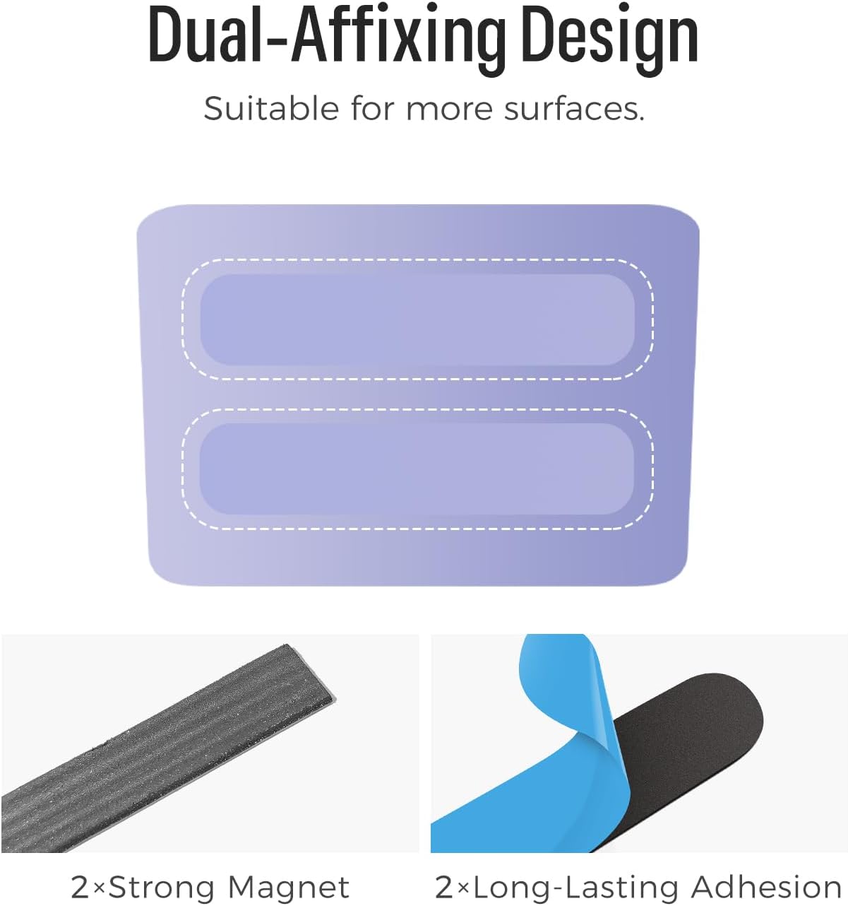 - DUAL AFFIXING DESIGN: Dry erase accessory tray with optional magnetic and adhesive stickers. Easily attaches to magnetic surfaces such as whiteboards and refrigerators and various nonmagnetic surfaces, too.