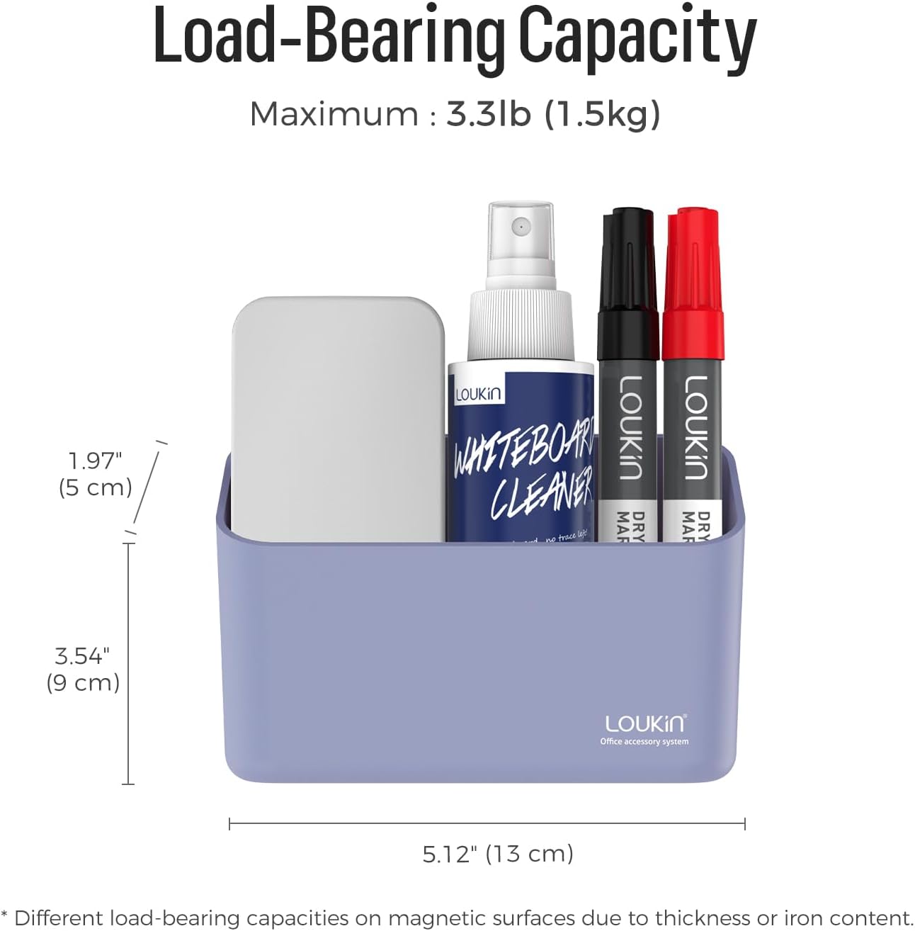 - SUPER LOAD BEARING: Secure magnetic storage organizer for whiteboards with a maximum loadbearing of capacity 3.3 lb (1.5kg).