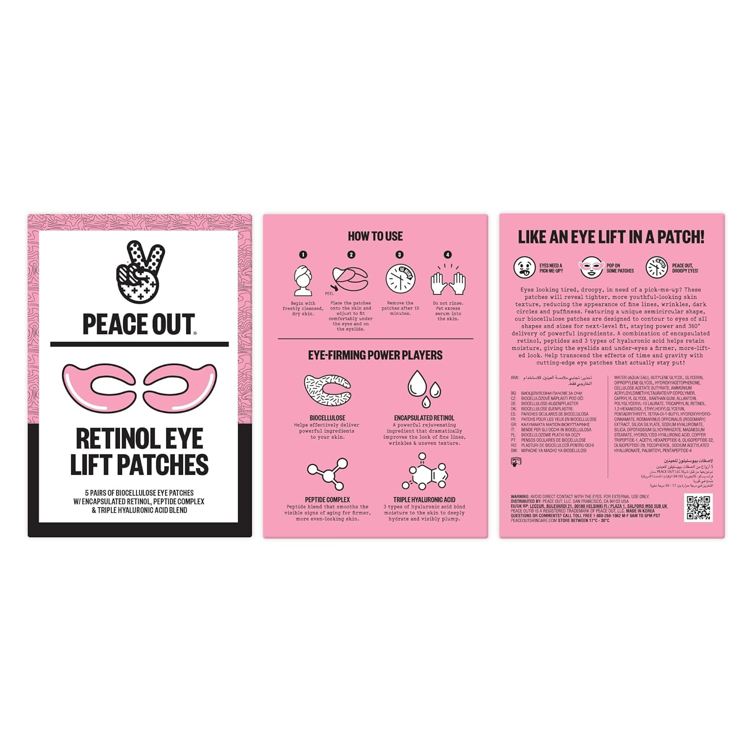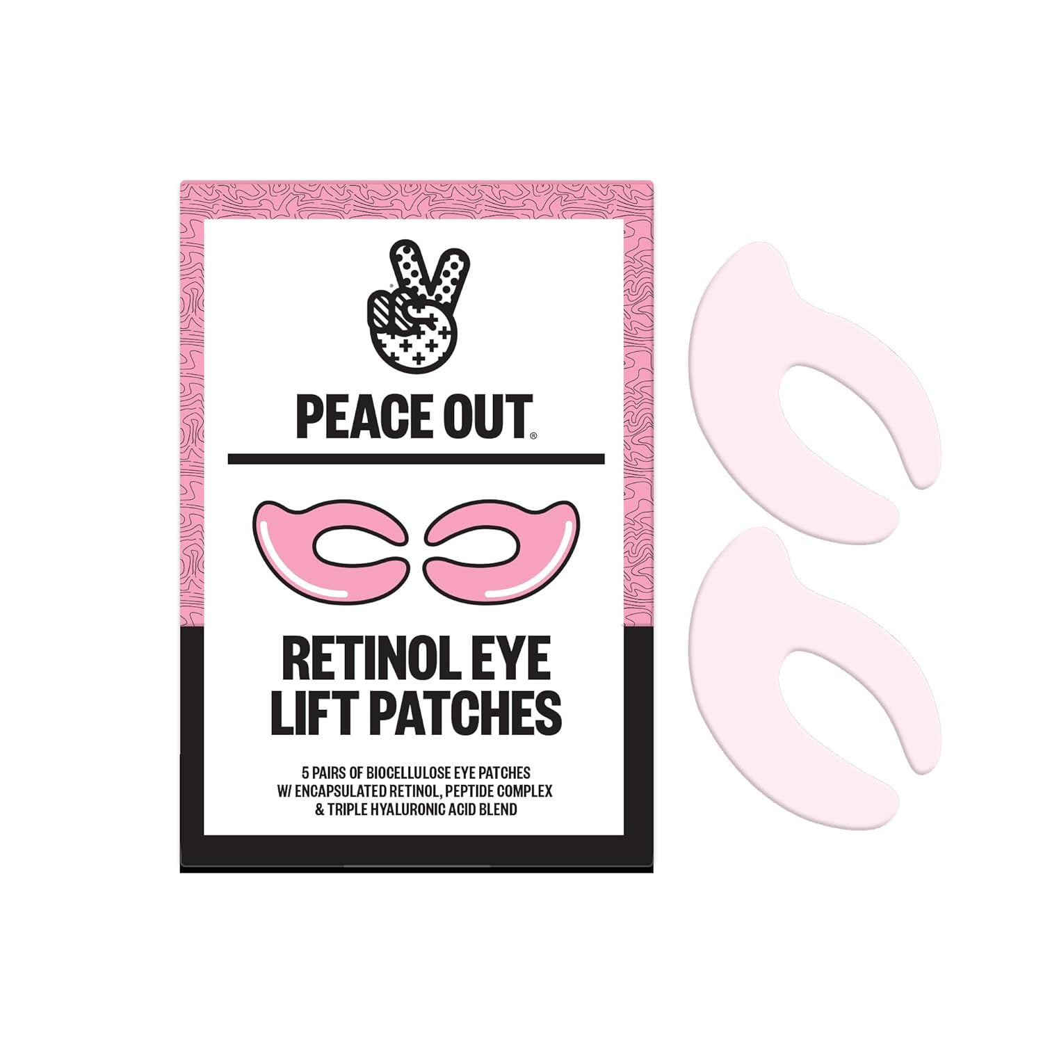 PEACE OUT Retinol Eye Lift Patches to Lift, Firm and Revitalize Tired Eyes, 360° Coverage Targets Fine Lines & Wrinkles, 5 Pack