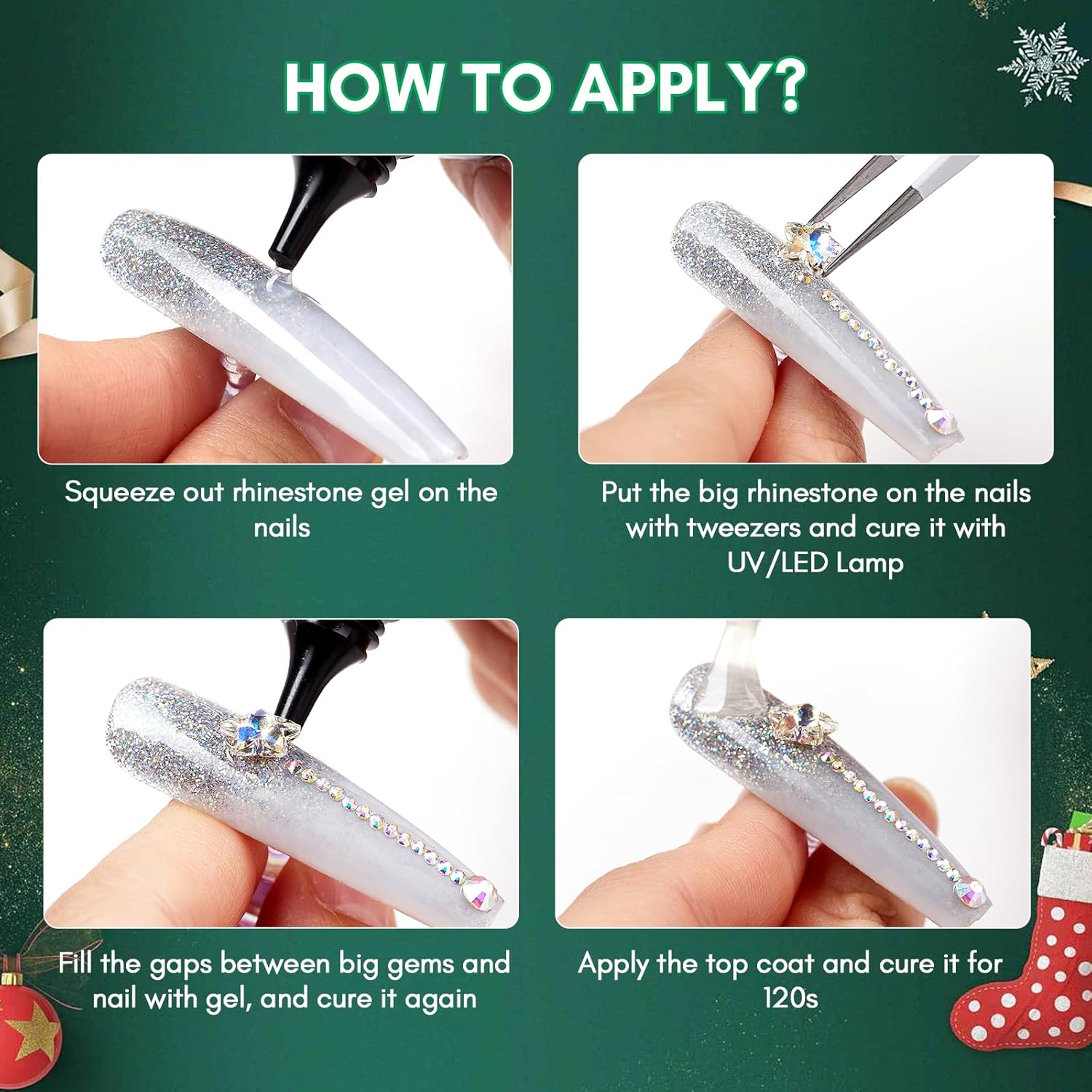 - Easy Application: Suitable for artificial nails, press-on nails, mobile decorations, and more. Start by applying the rhinestone glue on your nail, then use the tweezers to place your desired Christmas charm on the nail, filling gap between the nail and the charm. Cure with a UV or LED lamp, then apply a top coat for a more durable and long-lasting effect.οΌNote: The set does not include rhinestone glue gelοΌ