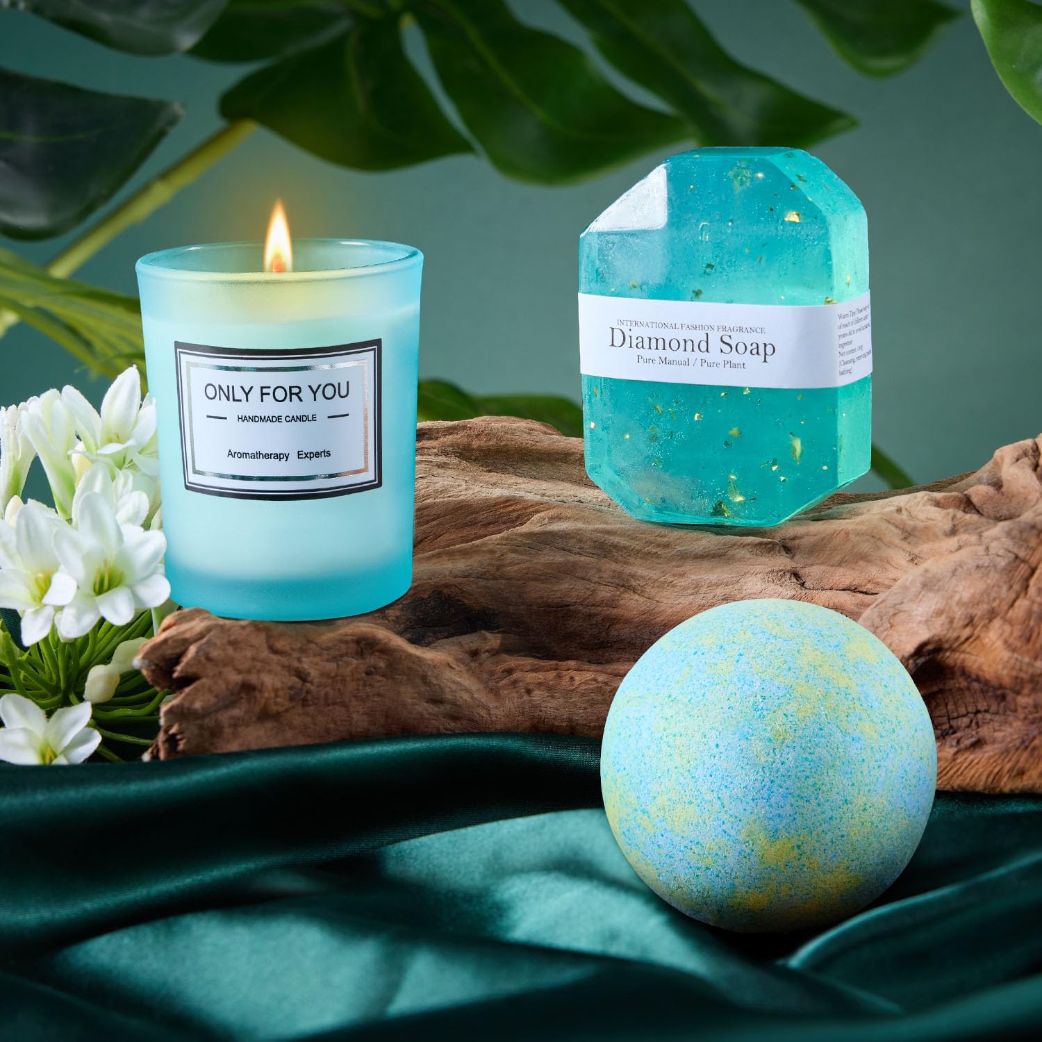 - Self Care Gift Set for Her - Inside the beautifully packaged gift box, she'll find a 20oz tumbler with straw, scented candle, handmade soap, bath bomb, ice roller, and a greeting card adorned with delicate dried flowers for that personal touch. It's a complete pampering package that ensures she feels loved and cherished