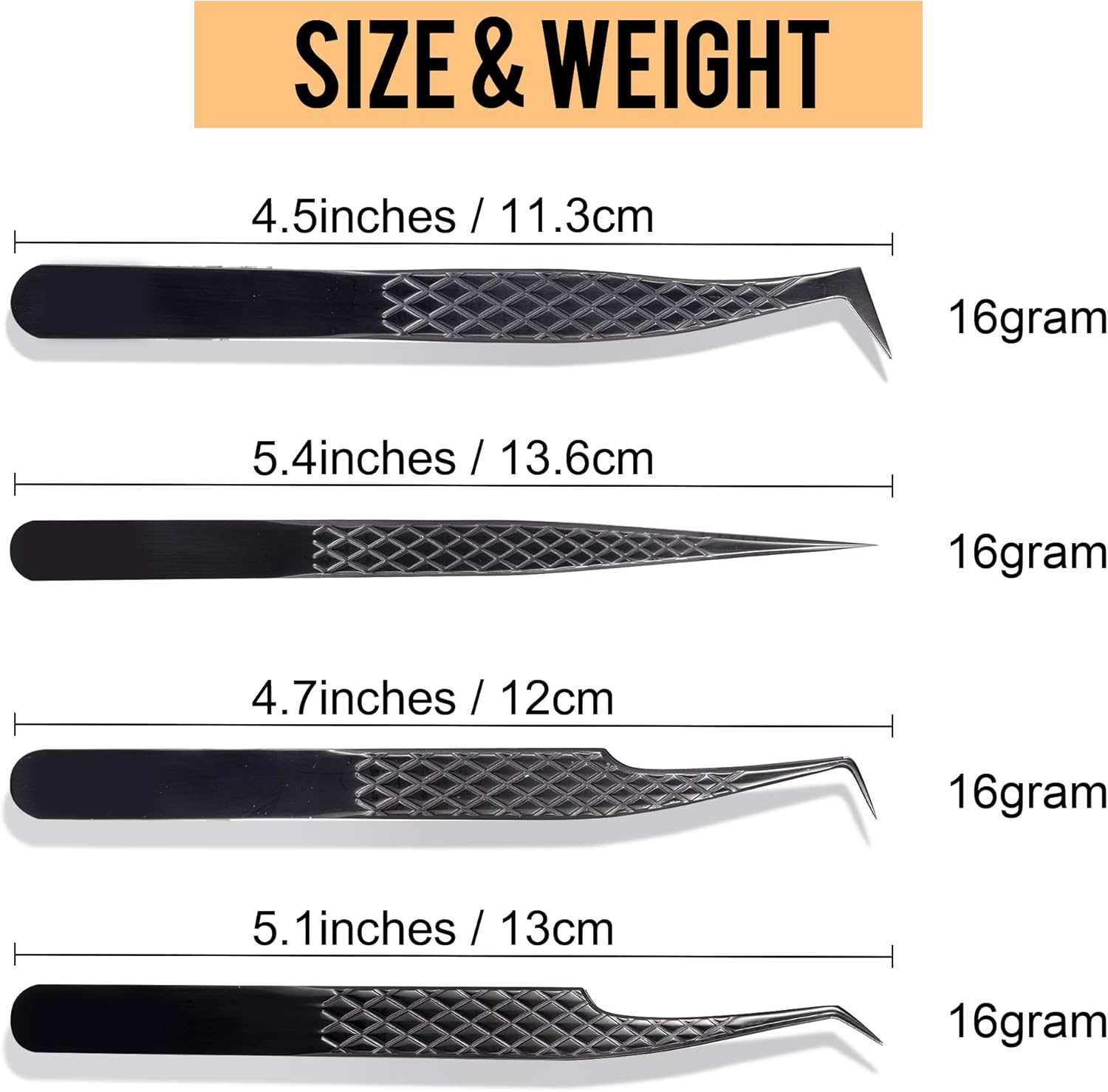 Fiber Tip Lash Tweezers For Eyelash Extension 4 Pcs Tweezers Professional Artist Tech Work Kit Tools,Best Volume Eyelash Lashes Extensions Precision Volume Boot 90 45 Degree(Titanium black)